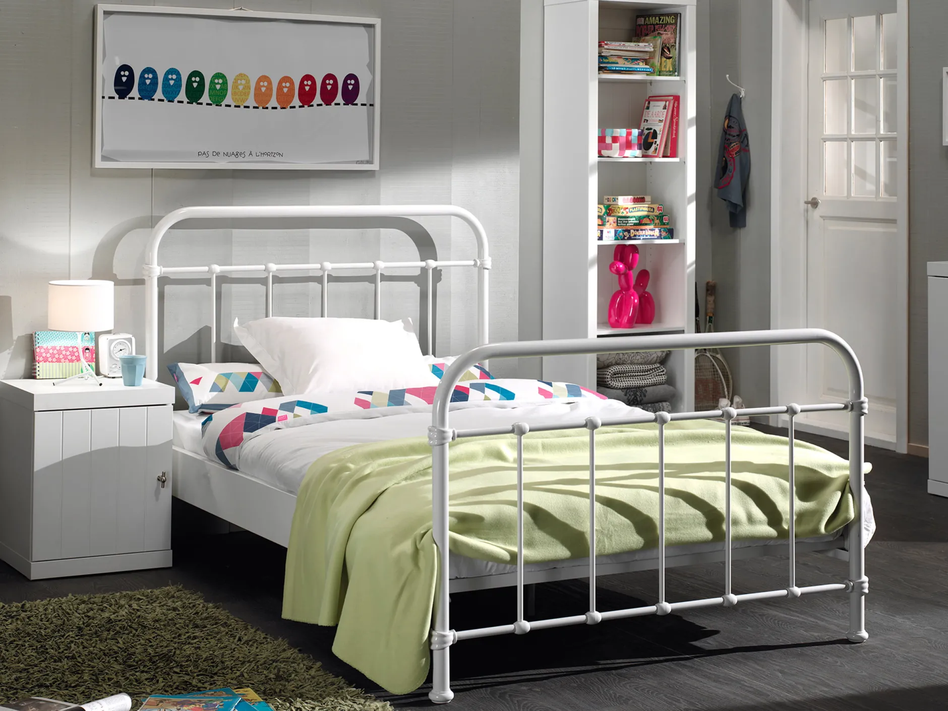 Dit elegante, romantische maar authentieke 2-persoons tienerbed heeft een hoog hoofd- en voeteneinde en wordt geleverd incl. een stevige lattenbodem. Uitermate geschikt voor een tienerkamer, een studentenkamer of een andere kleinere kamer, waar je toch op een kleine ruimte gemakkelijk met z’n tweeen in kunt duiken. Het is verkrijgbaar in zes kleuren namelijk wit, zwart, blauw, rood, mint of geel. Het bed is vervaardigd uit stevig, gebogen gelakt metaal. In het bed past elke matras van 120 x 200cm uit de collectie van huisenthuis.nl. Deze dien je apart bij te bestellen.