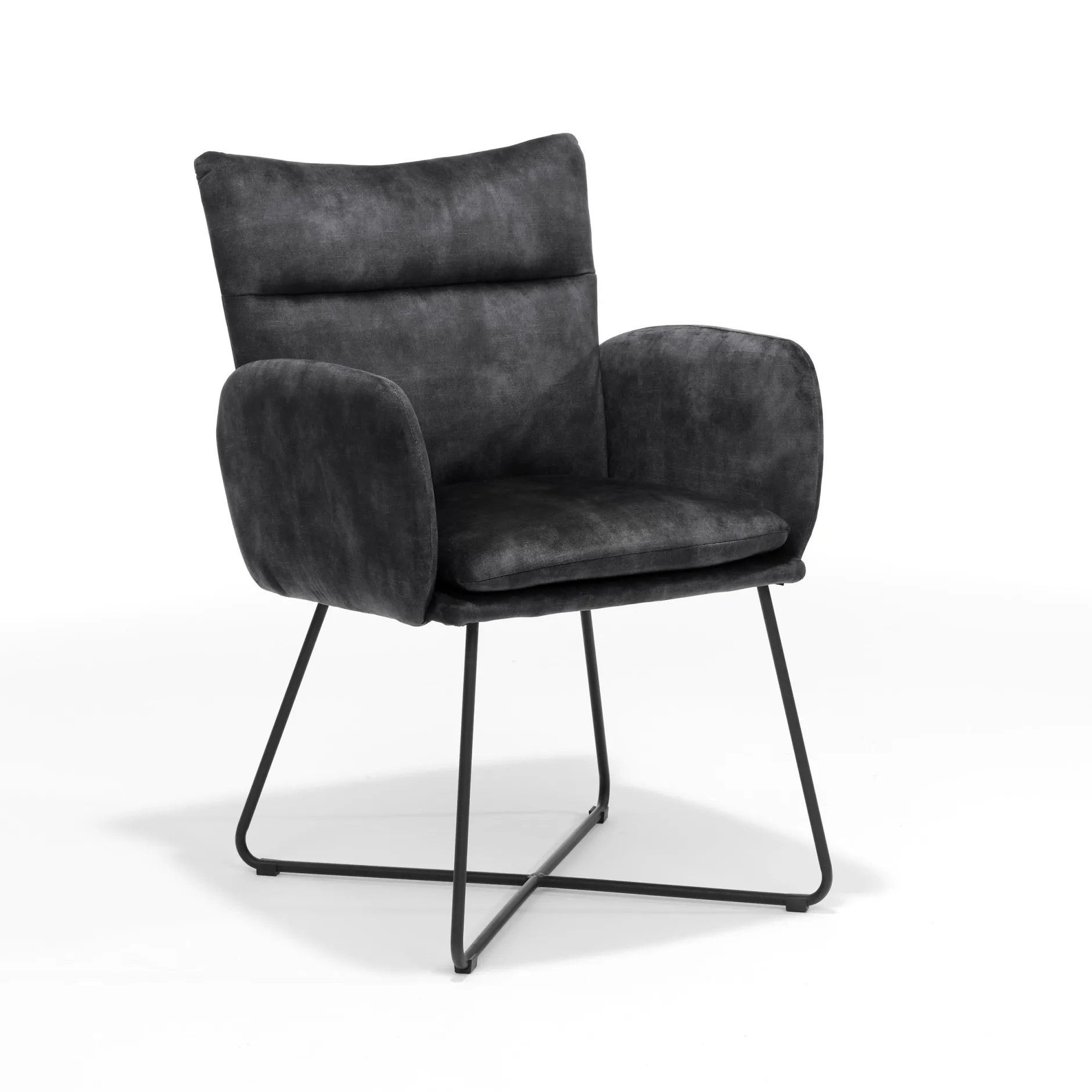 Deze chique en luxe eetkamerfauteuil is gemaakt van prachtig glanzend velours materiaal. De zitting rust op een strak zwart metalen onderstel en heeft hierdoor een vintage uitstraling. Armstoel Elisa is verkrijgbaar in de kleuren Antraciet, Oranje, Groen en Geel en is uitsluitend te bestellen per twee stuks.