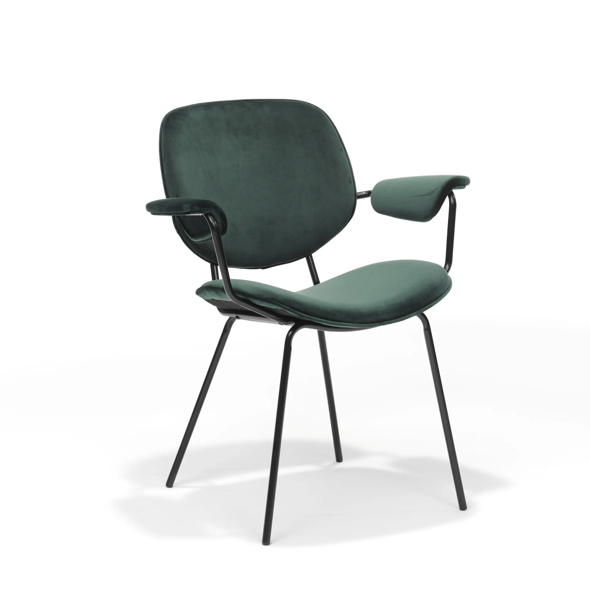 Deze unieke retrostoel heeft een ontzettend hippe en stijlvolle uitstraling door het gebruik van zwart metaal voor de poten en de gekleurde gestoffeerde zitting en rugleuning. De zitting, rugleuning en armleuningen zijn gemaakt van prachtig glanzend velours materiaal. De stoel heeft een zithoogte van 46 cm, een zitdiepte van 41 cm de armleuningen zijn 66,5 cm hoog. Armstoel Emma is verkrijgbaar in de kleuren Zwart, Grijs, Oker, Groen, Roze en Oranje en zijn per twee stuks te bestellen.