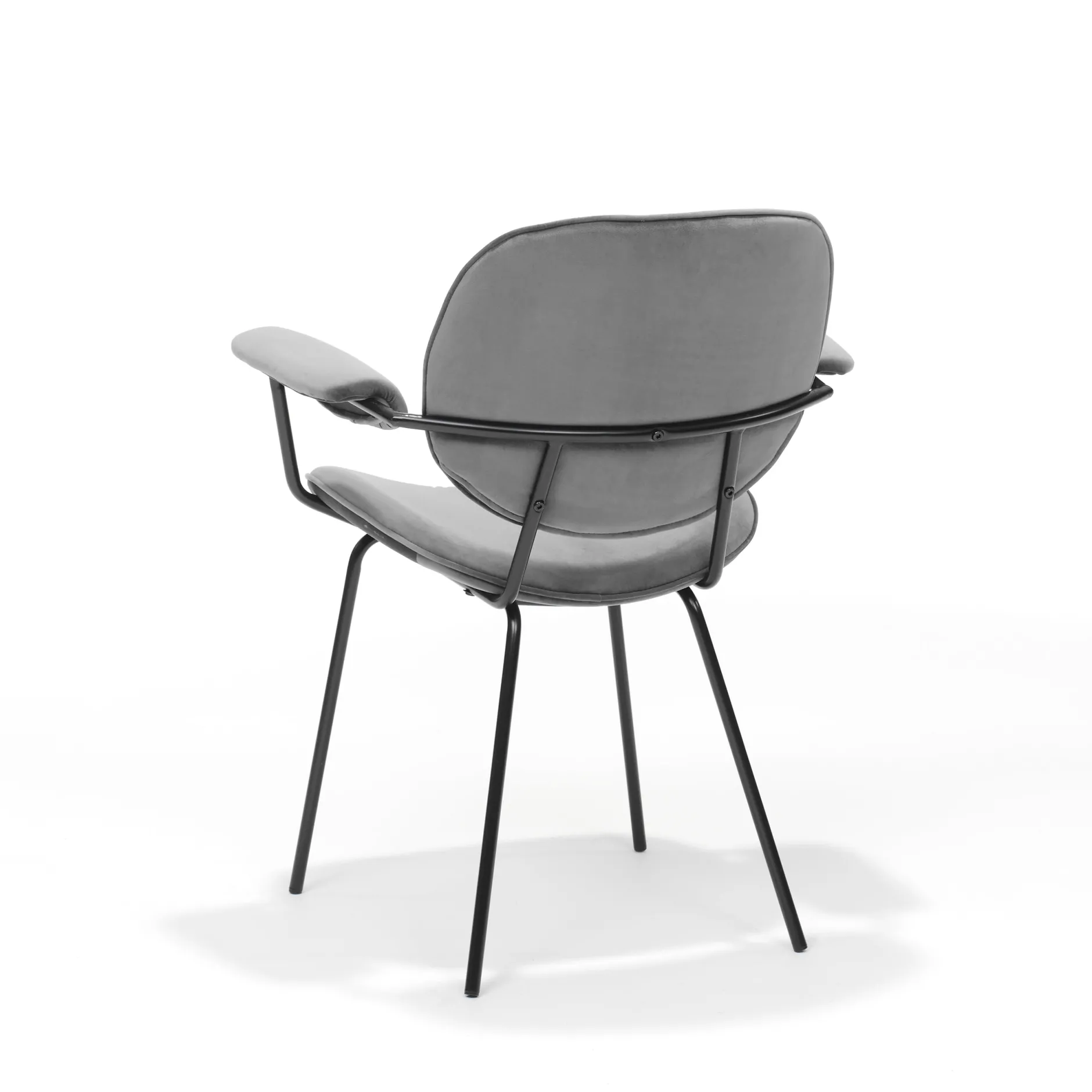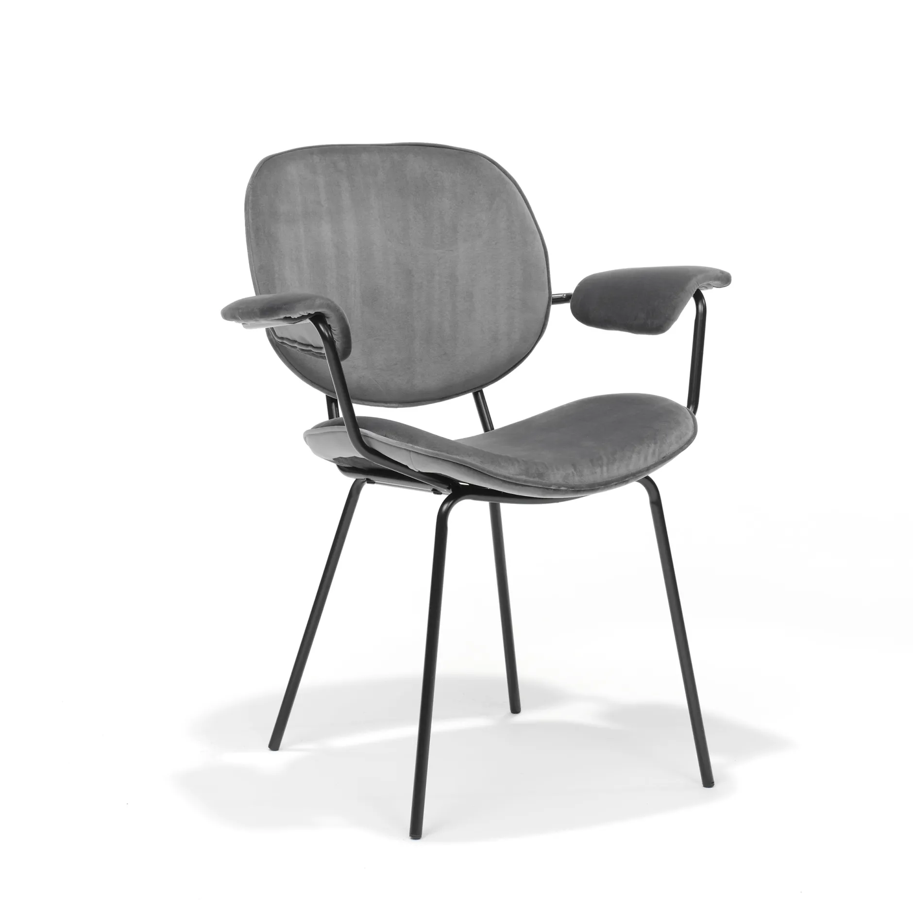 Deze unieke retrostoel heeft een ontzettend hippe en stijlvolle uitstraling door het gebruik van zwart metaal voor de poten en de gekleurde gestoffeerde zitting en rugleuning. De zitting, rugleuning en armleuningen zijn gemaakt van prachtig glanzend velours materiaal. De stoel heeft een zithoogte van 46 cm, een zitdiepte van 41 cm de armleuningen zijn 66,5 cm hoog. Armstoel Emma is verkrijgbaar in de kleuren Zwart, Grijs, Oker, Groen, Roze en Oranje en zijn per twee stuks te bestellen.