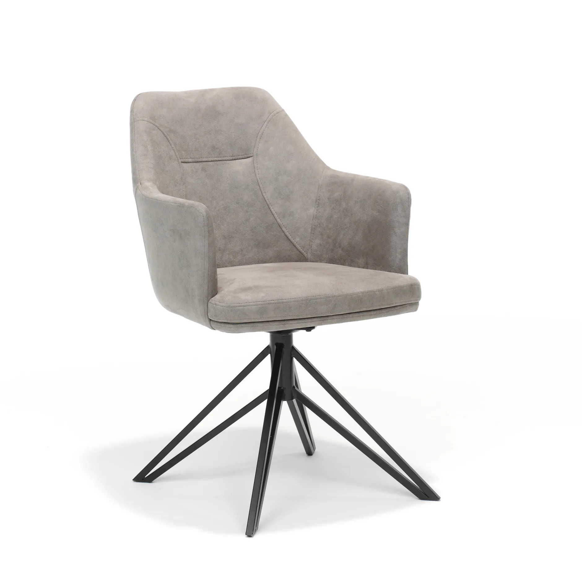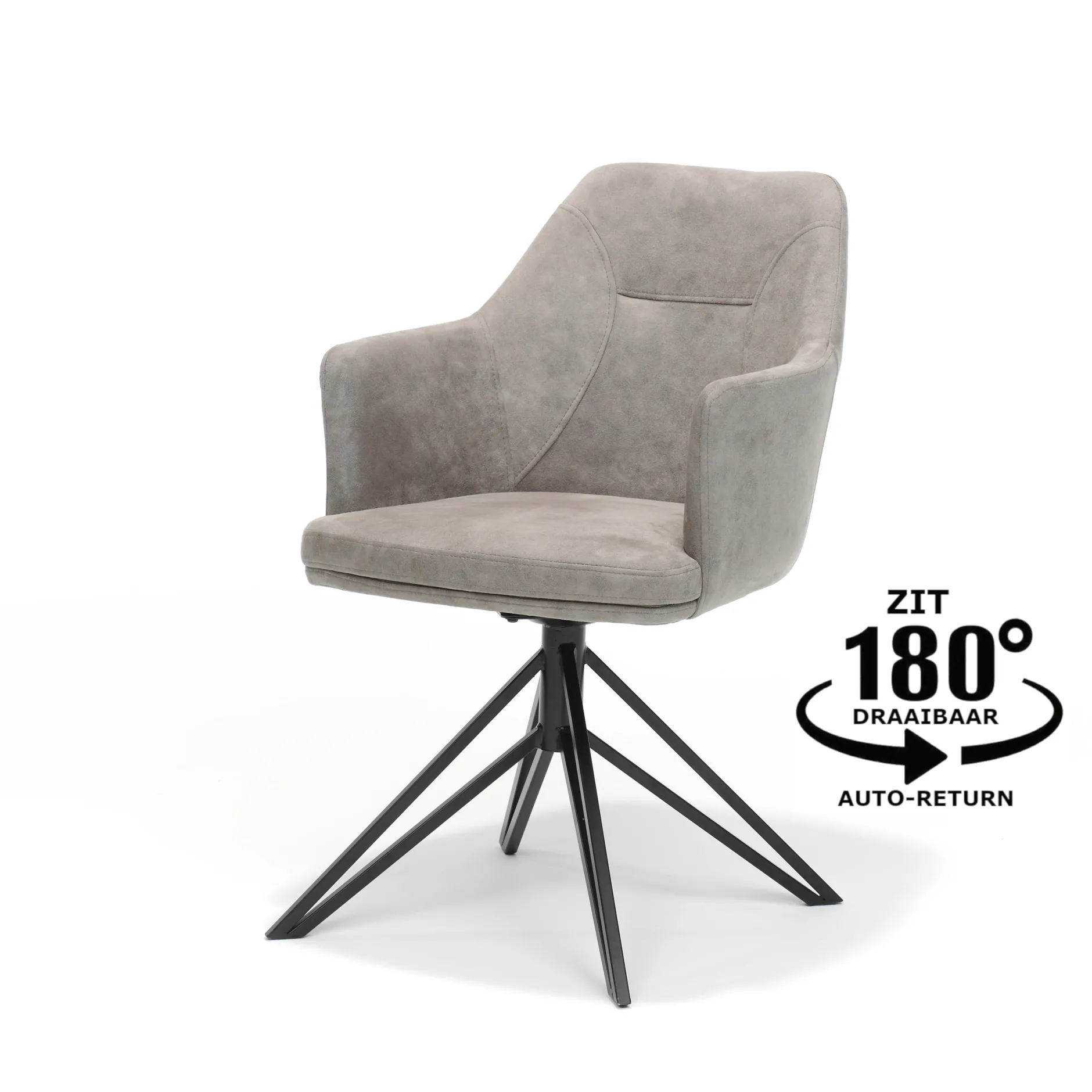 Armstoel Melvin is een luxe eetkamerfauteuil met industriële uitstraling. Het is mogelijk de stijlvolle zitting 180 graden te draaien op het zwart metalen onderstel. De zitting van de stoel is gestoffeerd en heeft nette stiknaden. Deze stoel geeft een echte chique twist aan uw interieur! Armstoel Melvin is verkrijgbaar in de kleuren Pebble, Cognac, Antraciet en Groen is per twee stuks te bestellen.