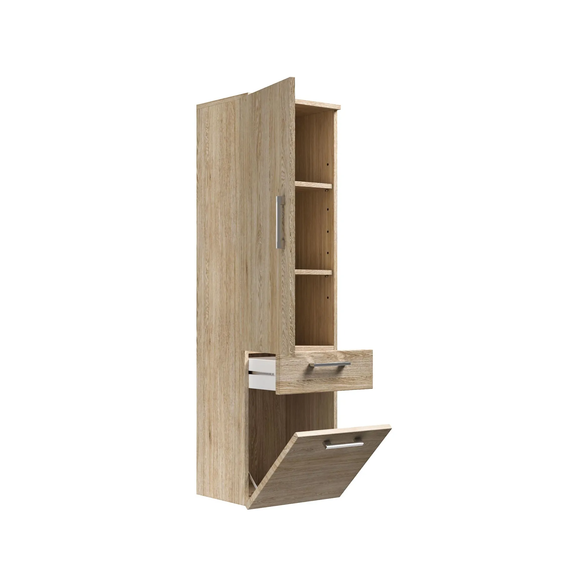Deze stijlvolle badkamerkast heeft hoogglans spaanplaat-fronten gecombineerd met metalen hangrepen. Geruisloze sluiting van deuren, kleppen en lade dankzij het soft-close systeem. Gemakkelijk te plaatsen naast het bad meubel voor extra opbergruimte. Achter de deur bevinden zich 2 verstelbare legplanken. Door zijn melamine afwerking is deze kast beter schoon te houden en langer beschermd tegen stof en vuil. Gemakkelijk te monteren door middel van bijgeleverde montagehandleiding. Bekijk ook de andere elementen uit deze serie!