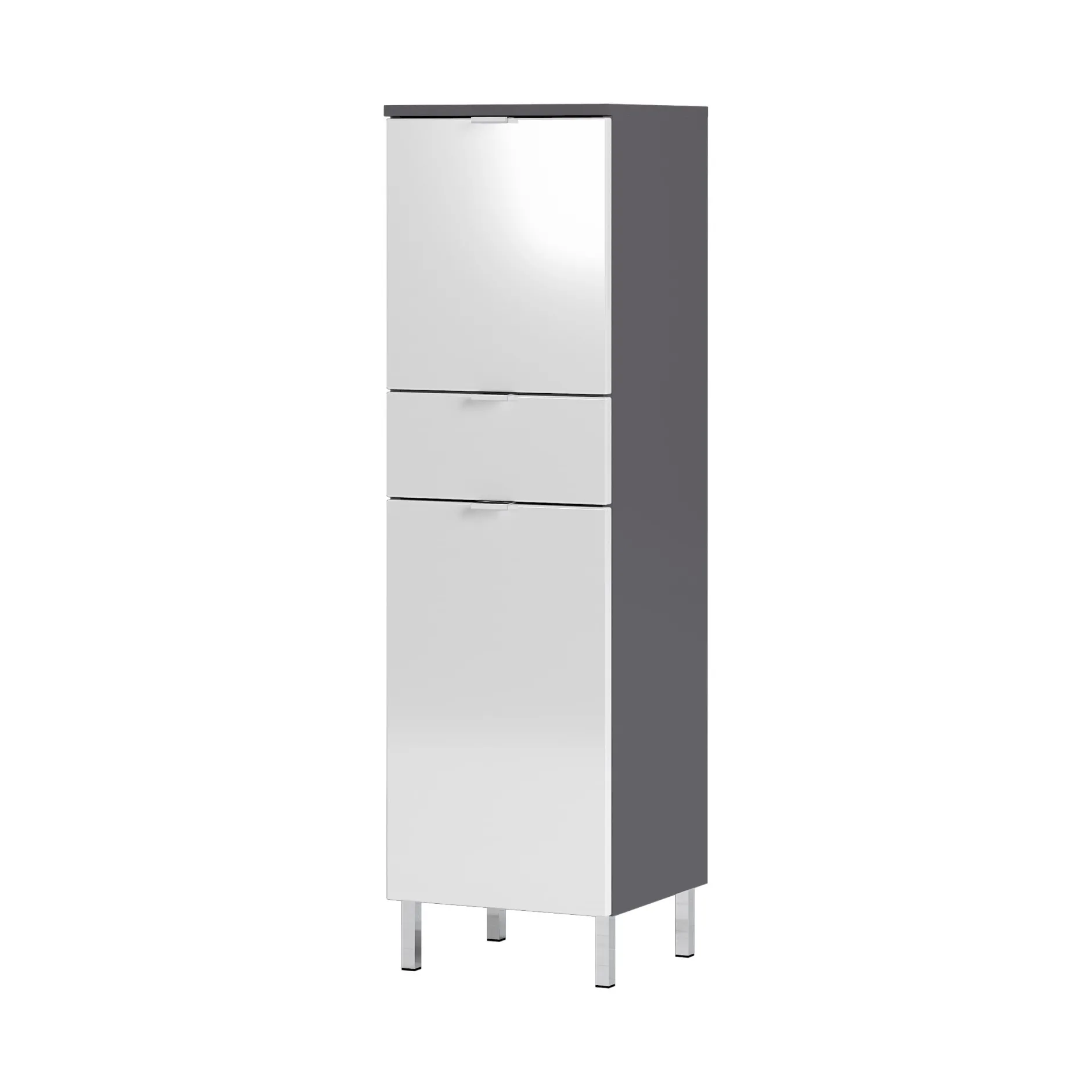 Met deze stijlvolle badkamerkast geef je je badkamer snel een luxe uitstraling. De badkamerkast heeft een lade en 2 deuren met daar achter twee verstelbare legplanken waardoor er voldoende ruimte is om al je spullen op te bergen. Allen voorzien van soft-close waardoor ze geruisloos sluiten. Het meubel is afgewerkt met een degelijke melamine waardoor deze goed schoon te maken is. Maak je badkamer compleet met de andere meubelen uit deze serie.