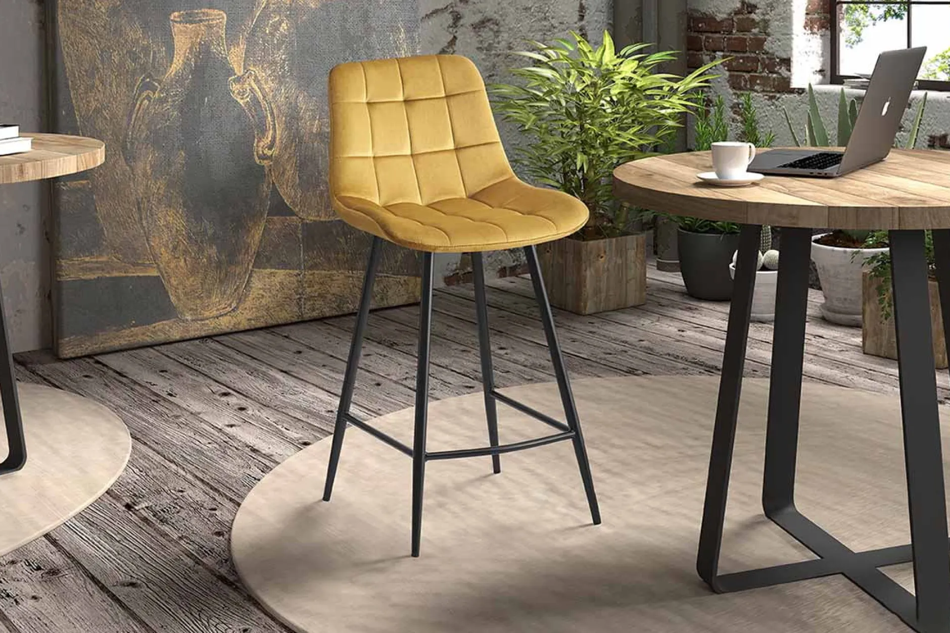 Deze hippe barkruk is afgewerkt met een fluwelen bekleding en heeft een metalen onderstel. De barkruk heeft een zithoogte van 65 cm en een zitdiepte van 36 cm. Verkrijgbaar in meerdere kleuren.