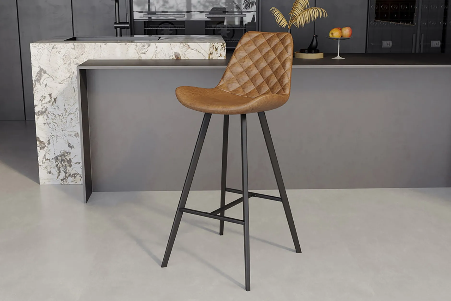 Deze praktische en betaalbare barkruk heeft een stevig zwart metalen onderstel. De kunstlederen vintage bekleding maakt deze barkruk een echte eyecatcher! Deze barkruk heeft een zithoogte van 75 centimeter en een zitdiepte van 40 centimeter en is verkrijgbaar in verschillende kleuren.