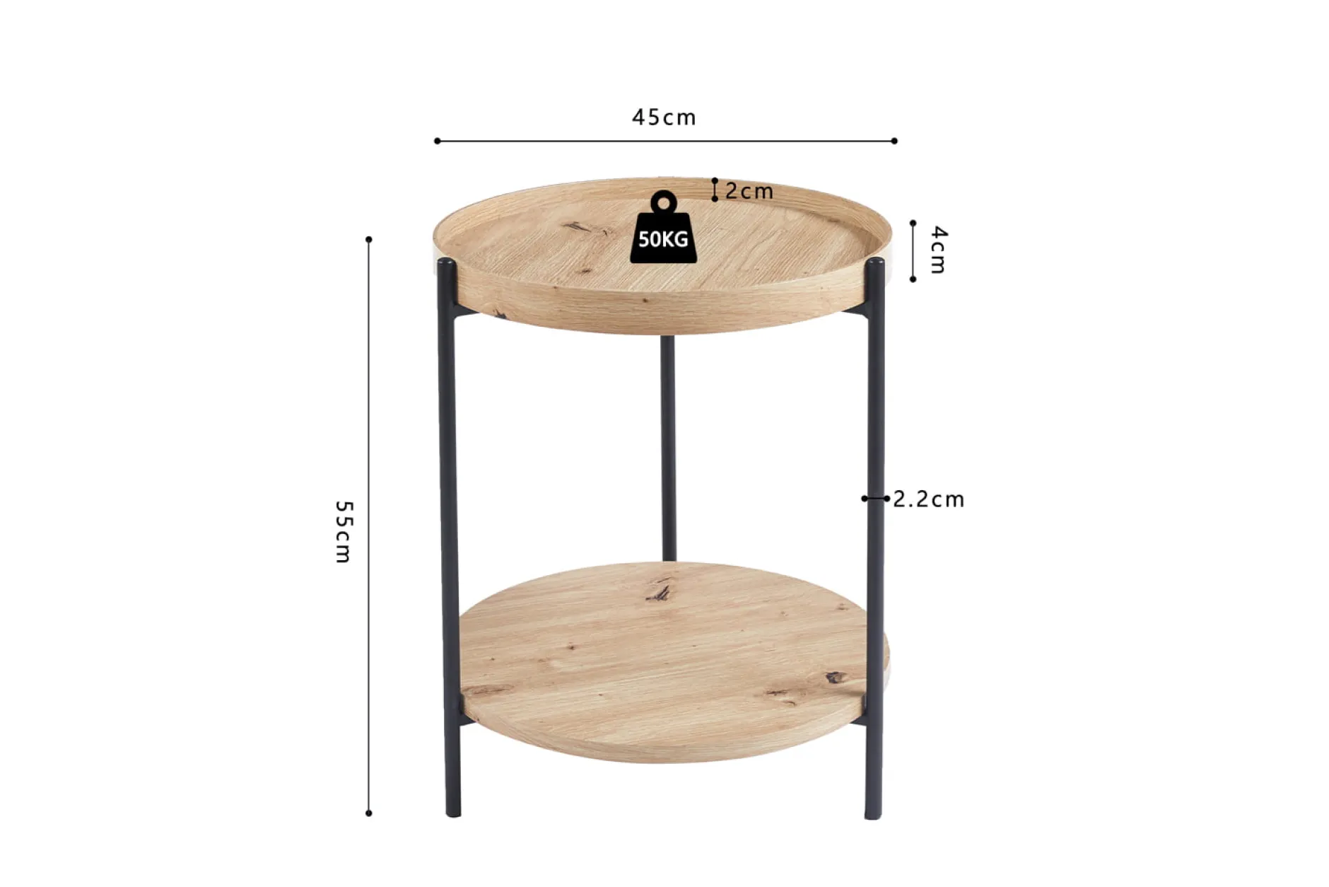 De Bijzettafel Aukje Eiken is een veelzijdige en praktische toevoeging aan jouw interieur. Met een breedte van 45 cm, een diepte van 45 cm en een hoogte van 55 cm is deze tafel perfect voor het neerzetten van decoraties of het serveren van drankjes.