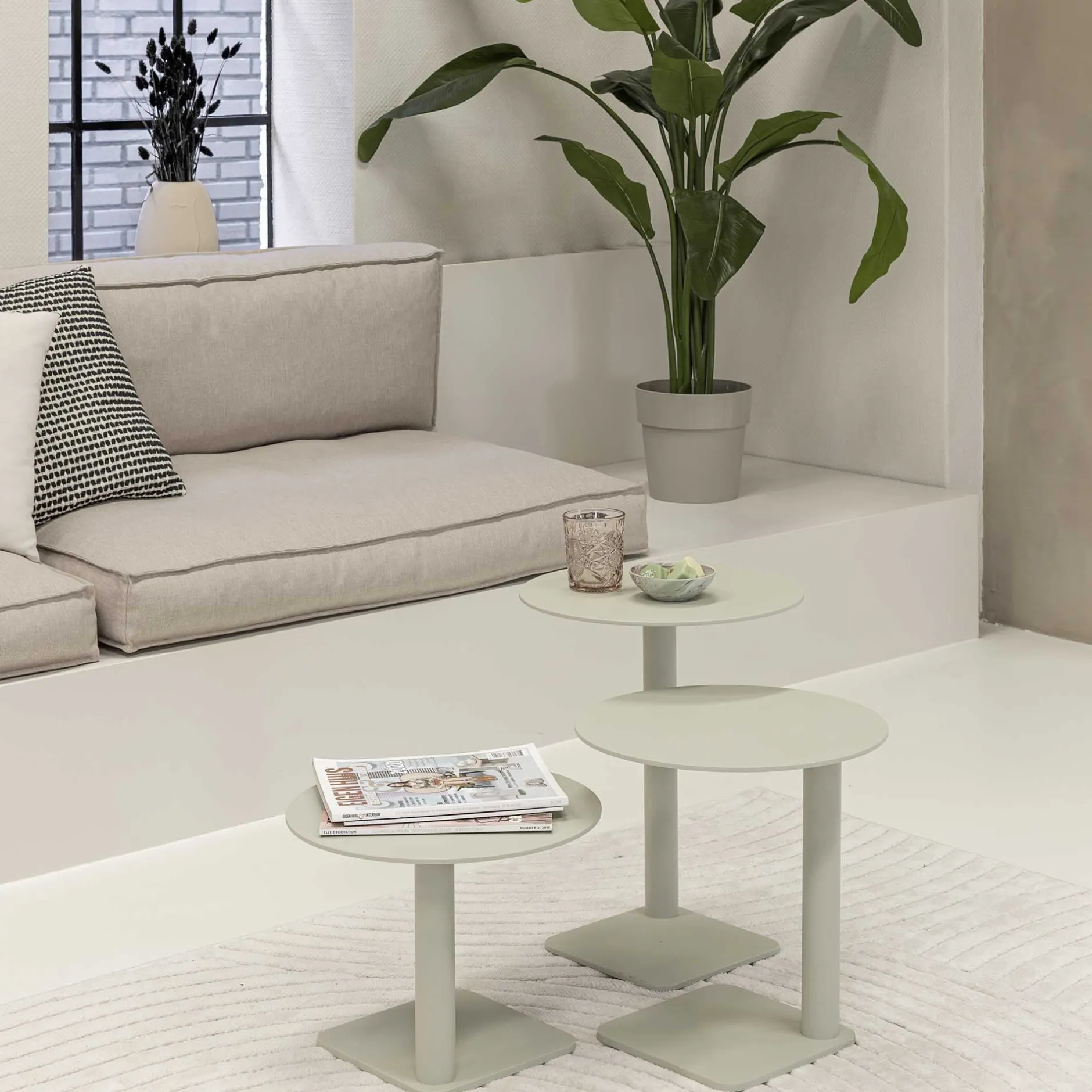 - De bijzettafels hebben verschillende hoogtes (30, 40 en 50 cm) en zijn ideaal om als set te combineren.