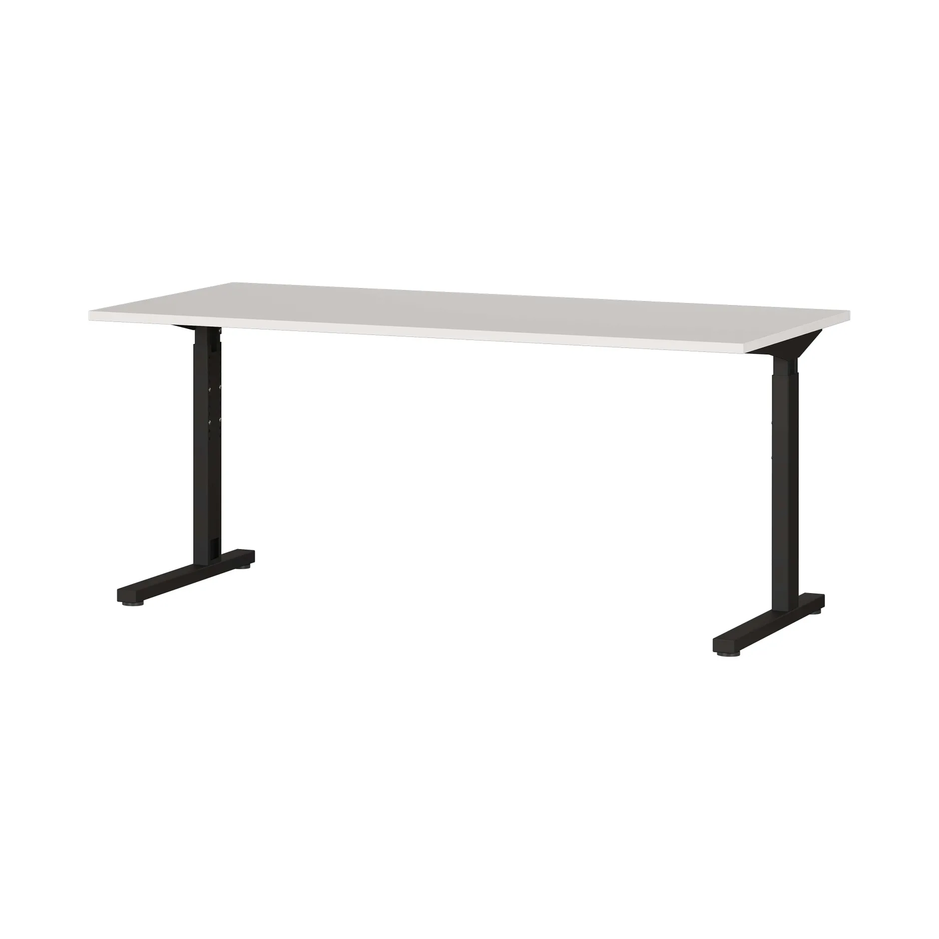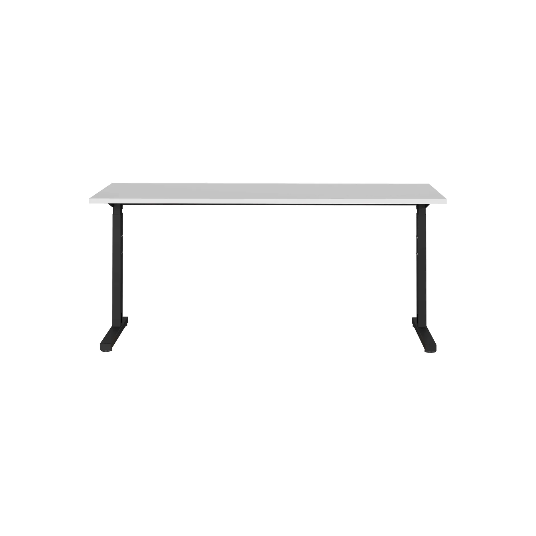 Dit bureau heeft een stevig metalen C-frame en is mechanisch in hoogte verstelbaar, zodat je altijd een comfortabele werkhouding kunt creëren. Het werkblad is 160 cm breed en 80 cm diep, en de hoogte is instelbaar tussen 70 en 80 cm. De combinatie van een lichtgrijs blad en zwart frame past in vrijwel iedere kantooromgeving.