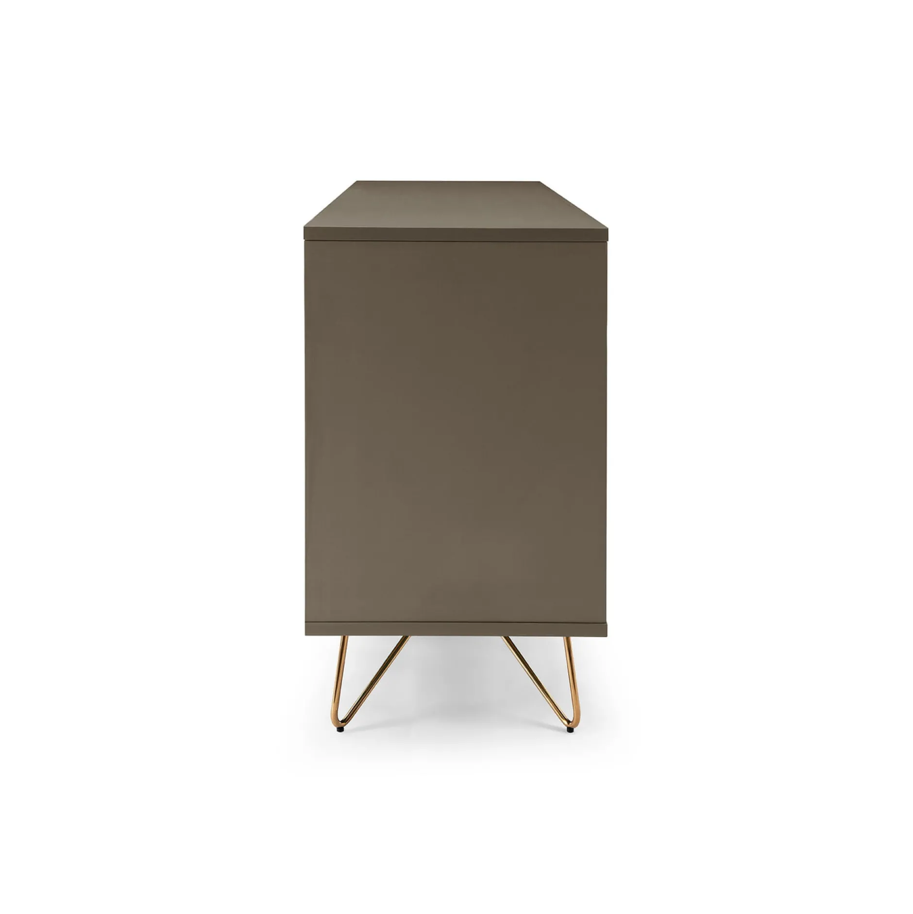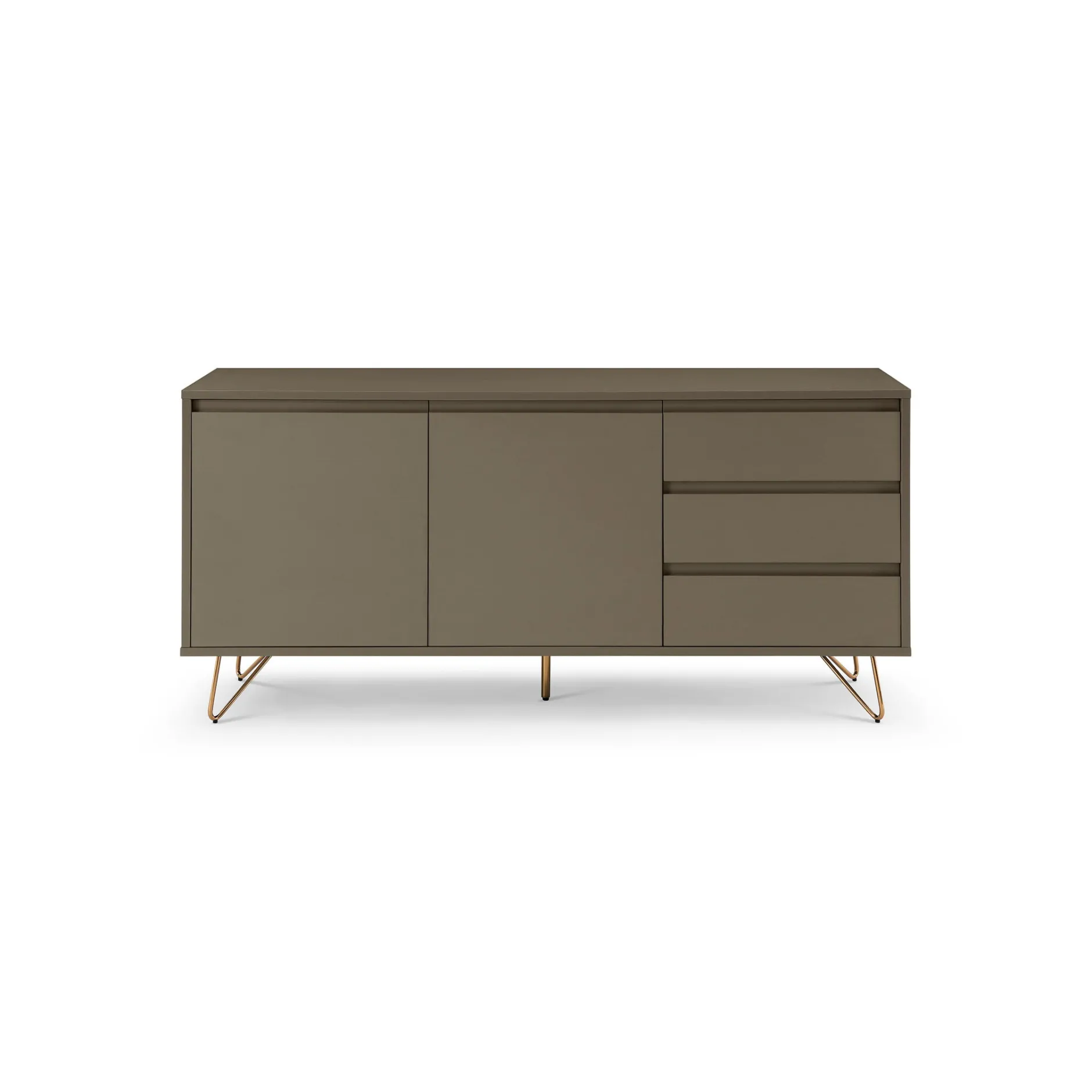 Dit stijlvolle dressoir biedt voldoende ruimte voor al je spullen, bovenop het dressoir is ruimte voor enkele accessoires. Het dressoir is vervaardigd uit een stevige MDF en heeft een matte afwerking. Achter elke deur bevindt zich 1 verstelbare legplank. Door de combinatie met zijn gouden metalen poten een echte eyecatcher in je interieur. Gemakkelijk te monteren doormiddel van bijgeleverde montagehandleiding. Bekijk ook de andere elementen uit deze serie.