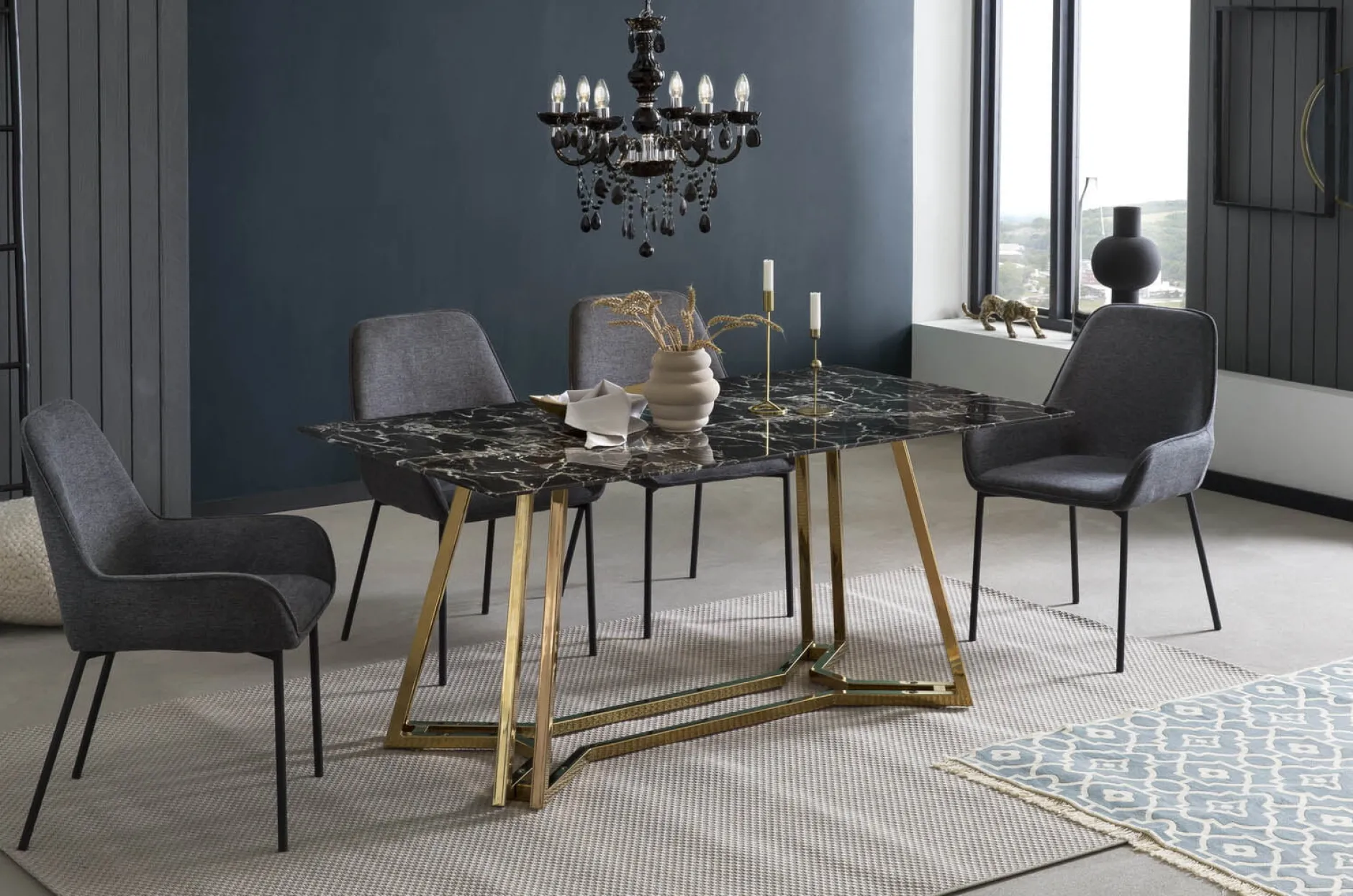 Deze stevige eetkamertafel heeft een stevig verchroomd frame. Het glazen blad heeft een marmer uitstraling, is 10mm dik en is vervaardigd uit gehard veiligheidsglas. Gemakkelijk te monteren doormiddel van bijgeleverde montagehandleiding.
