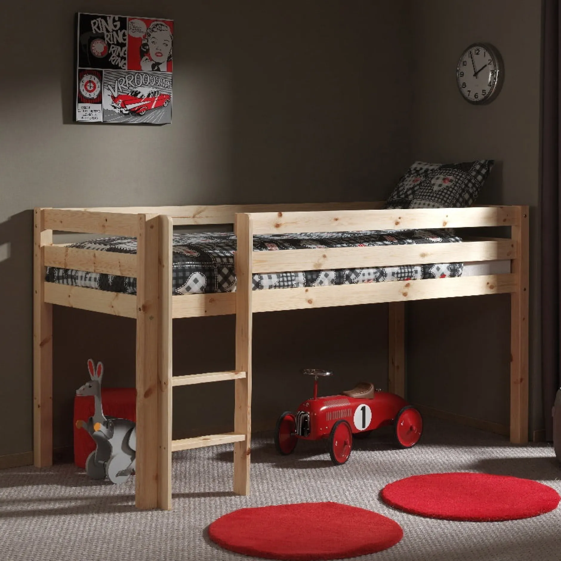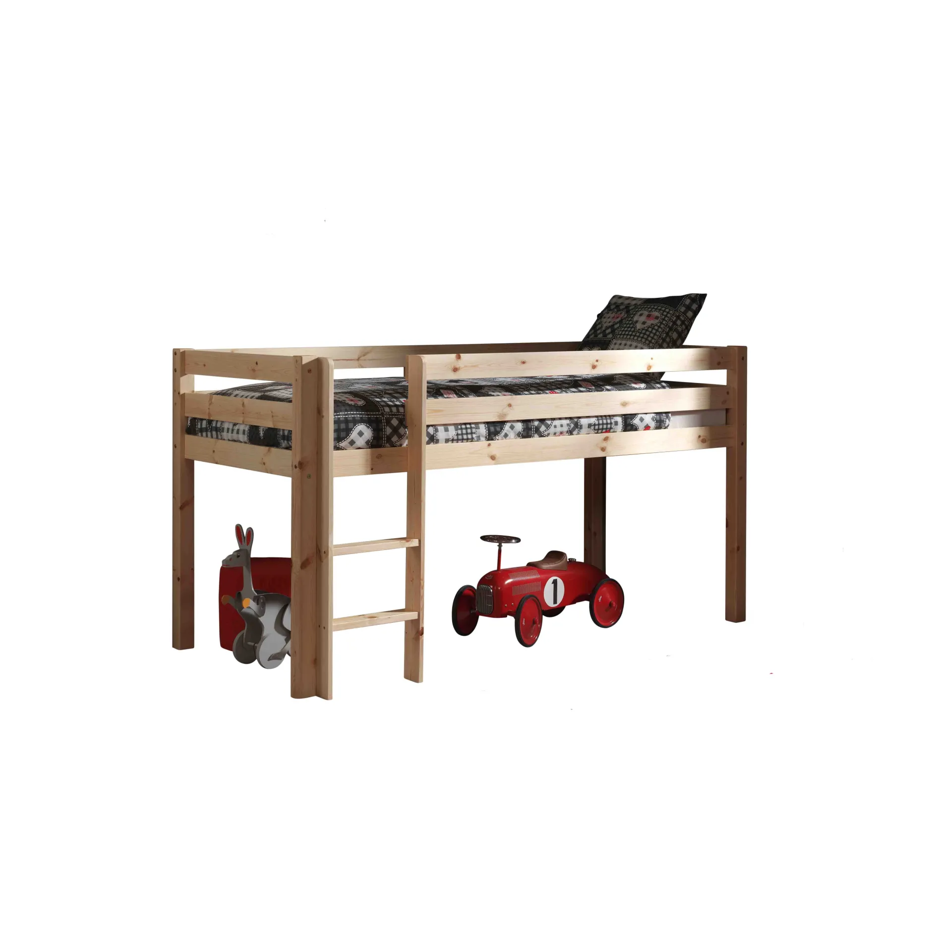 Deze stabiele hoogslaper is gemaakt van Scandinavisch grenen is afgewerkt met een sterke lak. Een veilige nachtrust is gegarandeerd door de valbeveiliging rondom het slaapgedeelte. De kan zowel links als rechts gemonteerd worden. De lattenbodem wordt meegeleverd, in dit bed past een matras van 90×200 cm. Bekijk ook de rest van deze collectie voor bijpassende items!