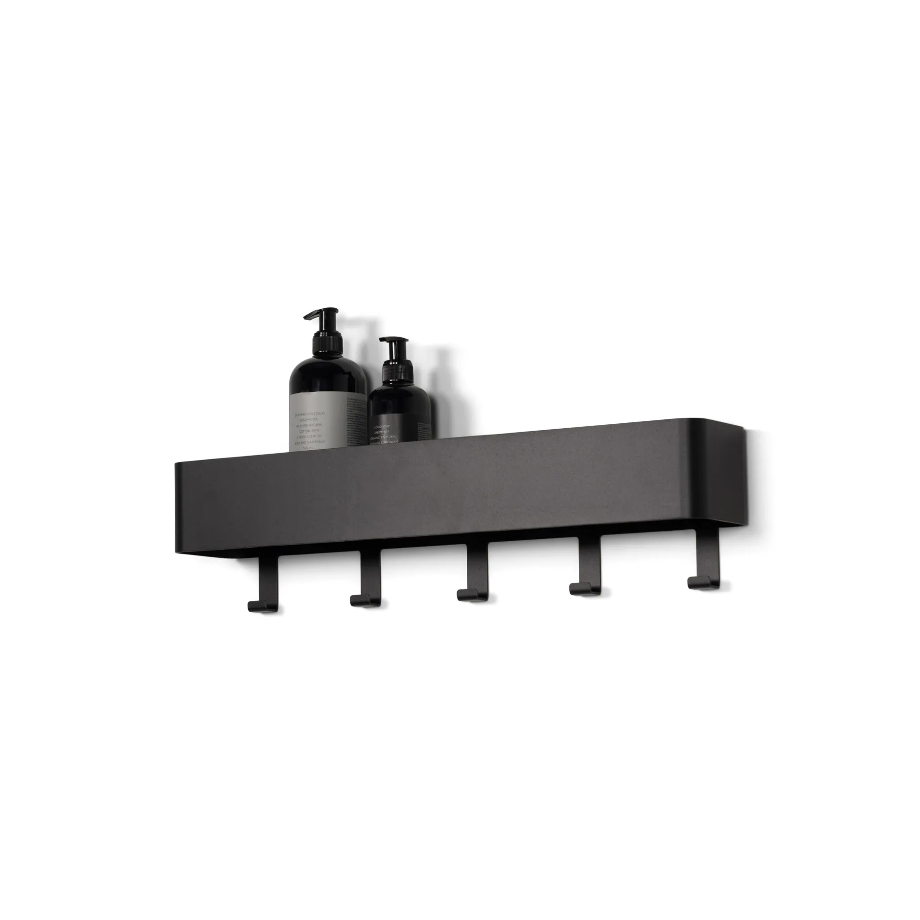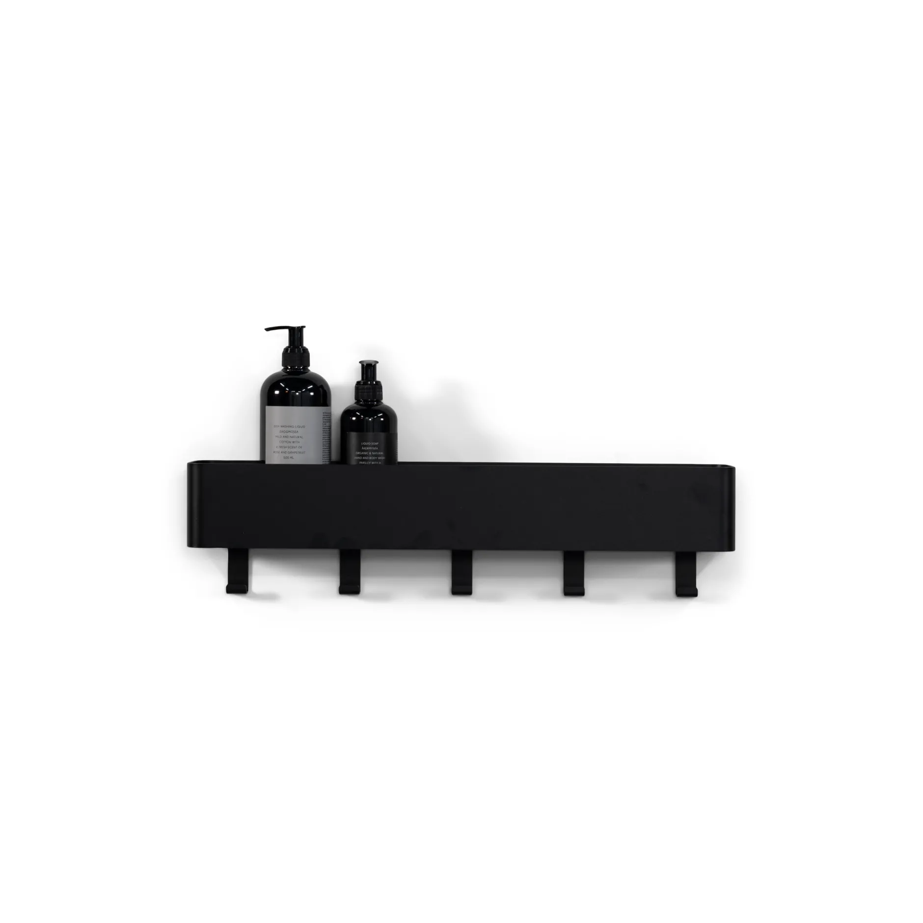 Optimaliseer je ruimte met de Kapstok Alfie Zwart 5-haaks – een buitengewoon veelzijdige wandplank en kapstok in één!