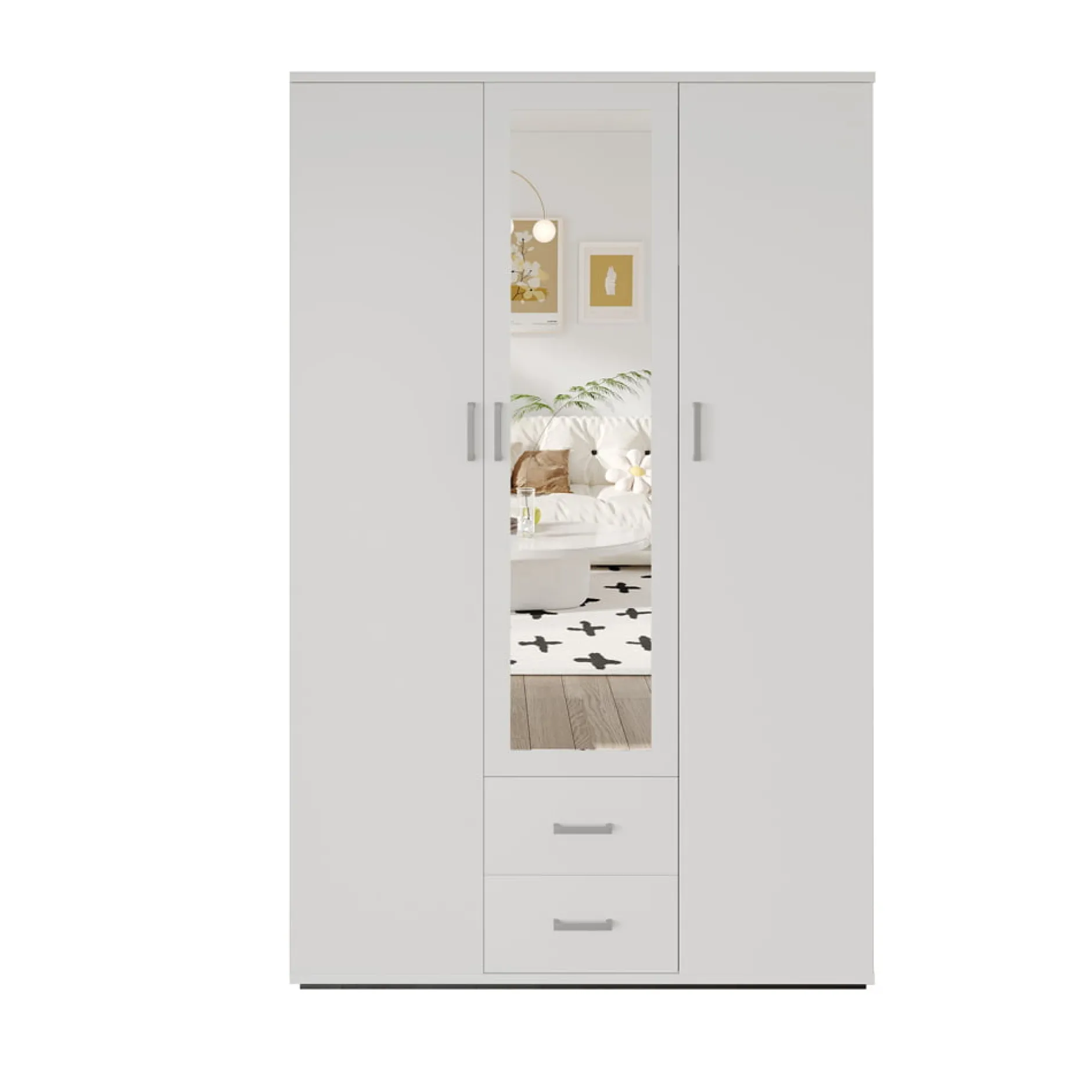 Gemaakt van duurzaam spaanplaat en MDF, is deze kast voorzien van een spiegel die niet alleen praktisch is, maar ook bijdraagt aan de moderne uitstraling van je interieur. Het hanggedeelte is perfect voor het ophangen van lange kledingstukken, terwijl de inbegrepen lade extra opbergruimte biedt voor kleinere items.
