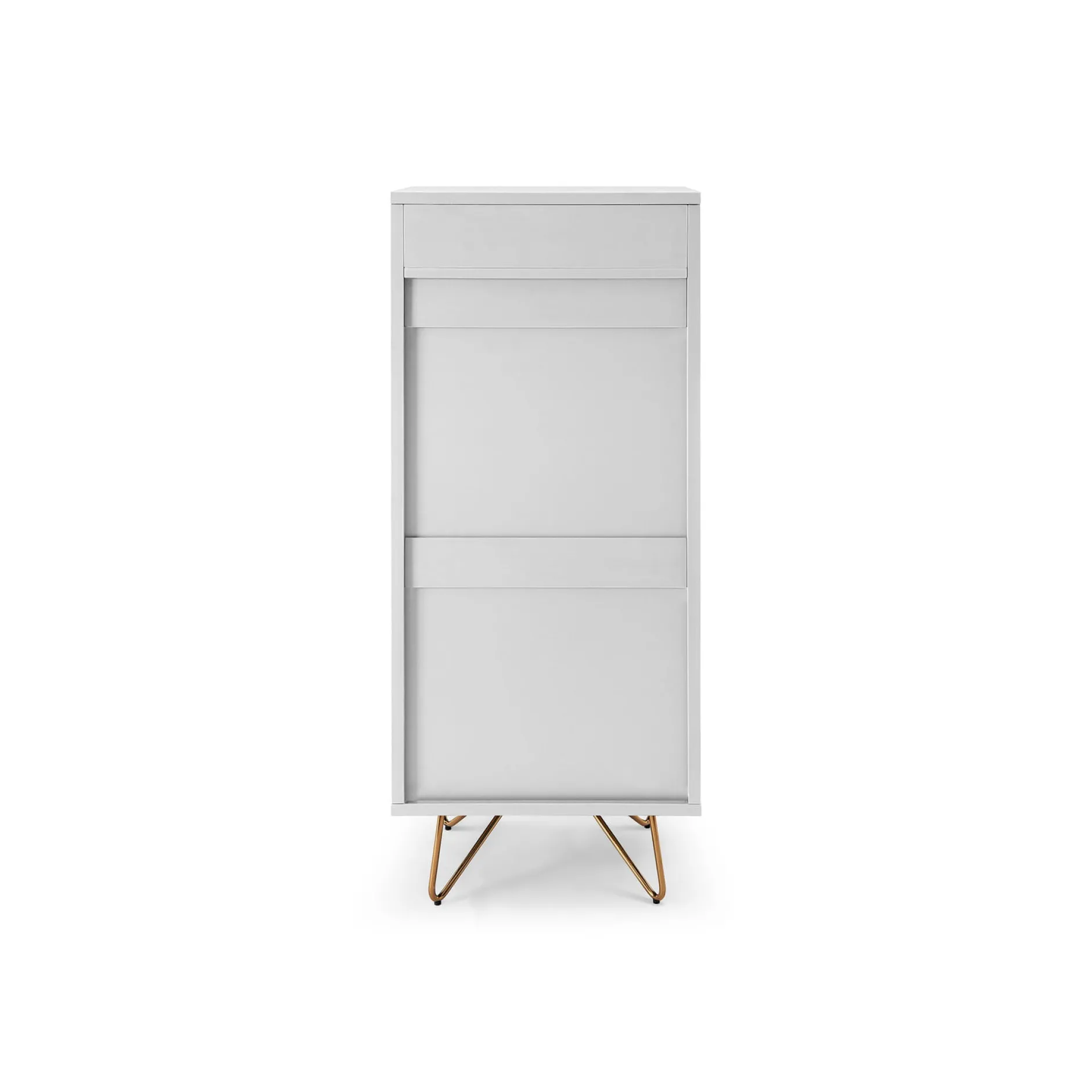 Deze stijlvolle ladekast biedt voldoende ruimte voor al je spullen, bovenop de ladekast is een uitklapbare spiegel aanwezig. De ladekast is vervaardigd uit een stevige MDF en heeft een matte afwerking. Door de combinatie met zijn gouden metalen poten een echte eyecatcher in je interieur. Gemakkelijk te monteren doormiddel van bijgeleverde montagehandleiding. Wandmontage vereist. Bekijk ook de andere elementen uit deze serie.