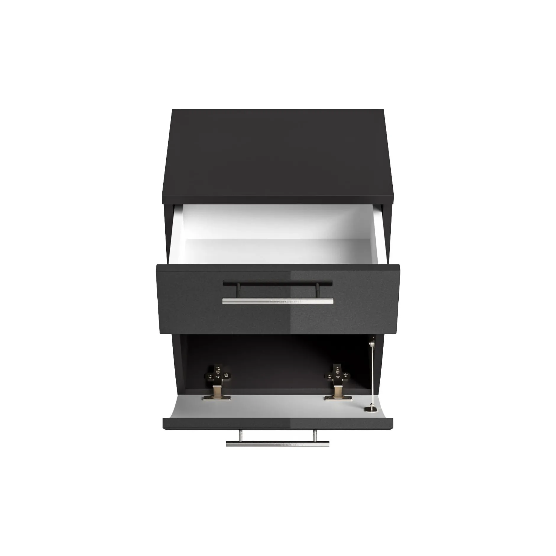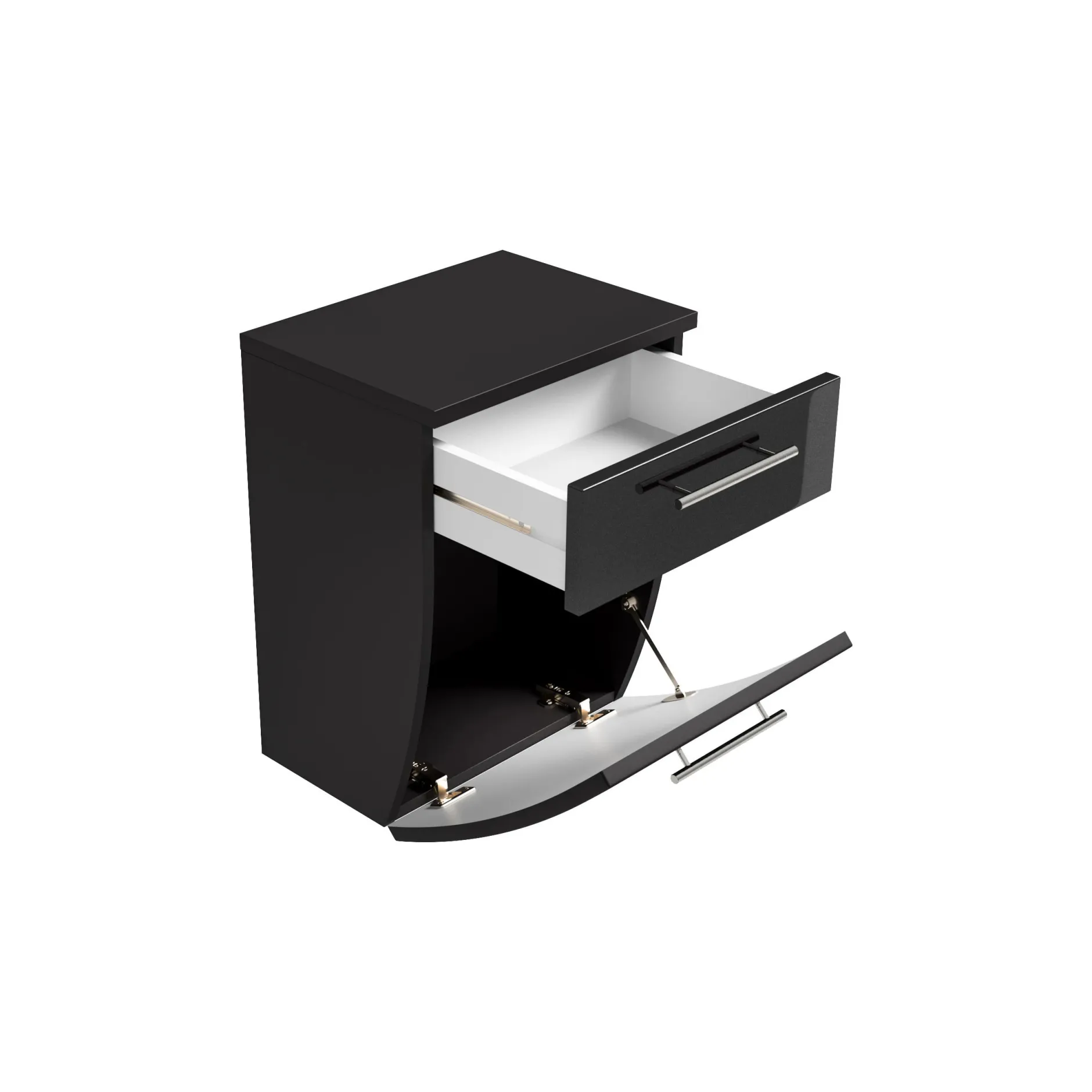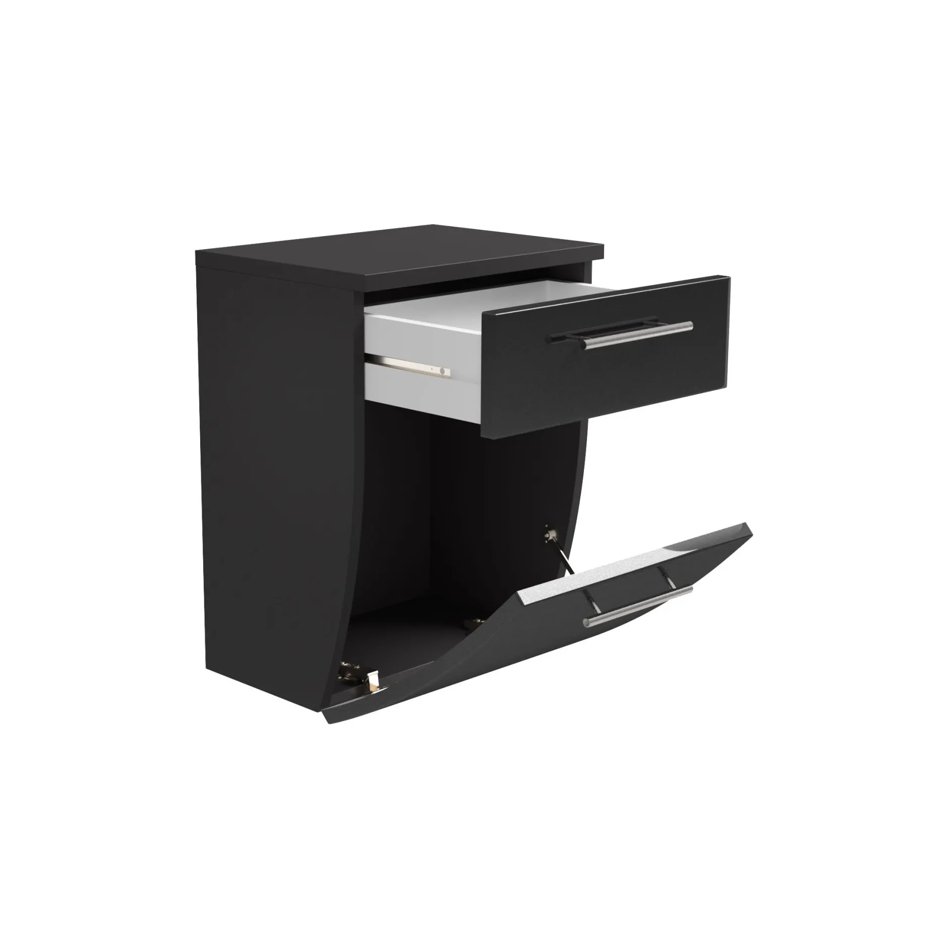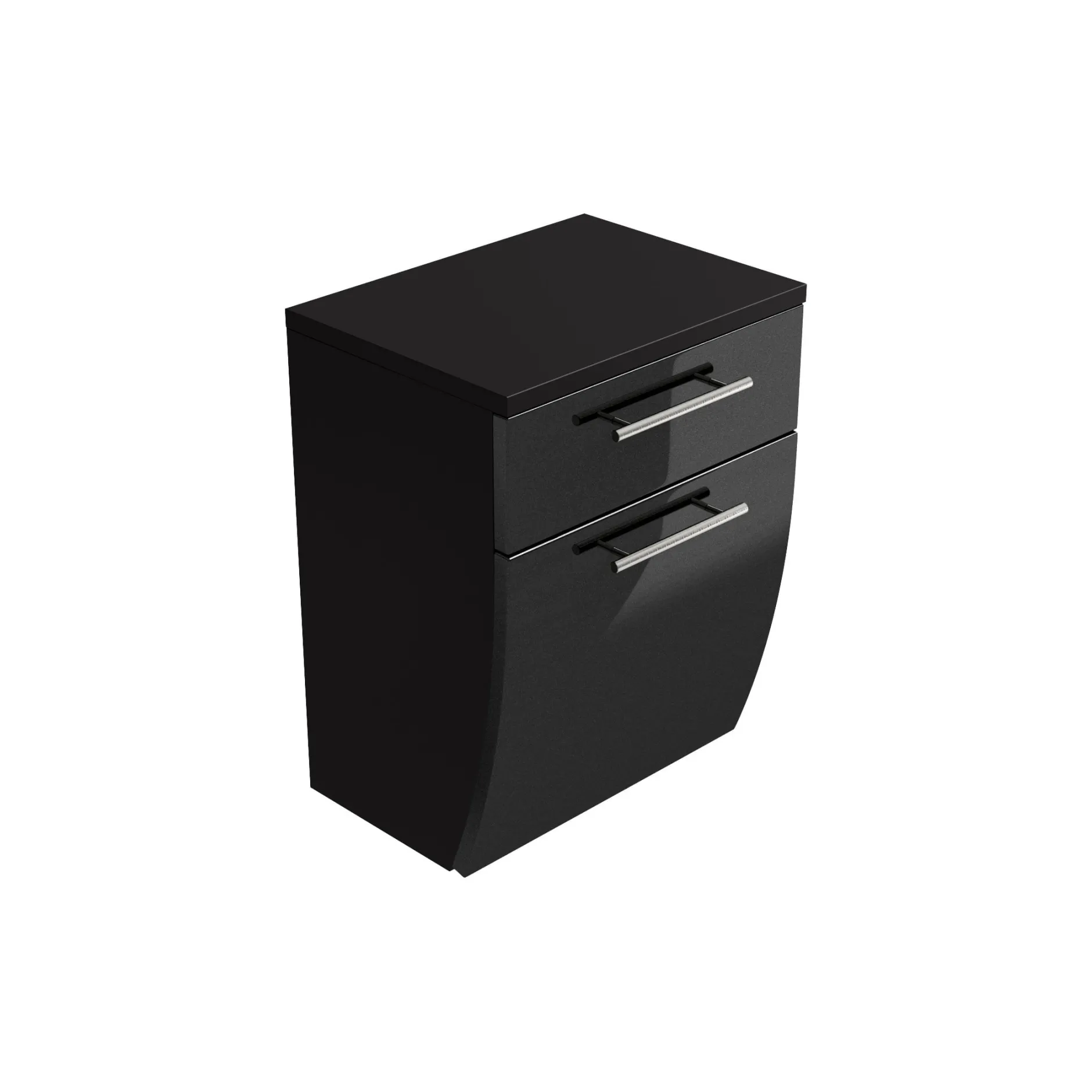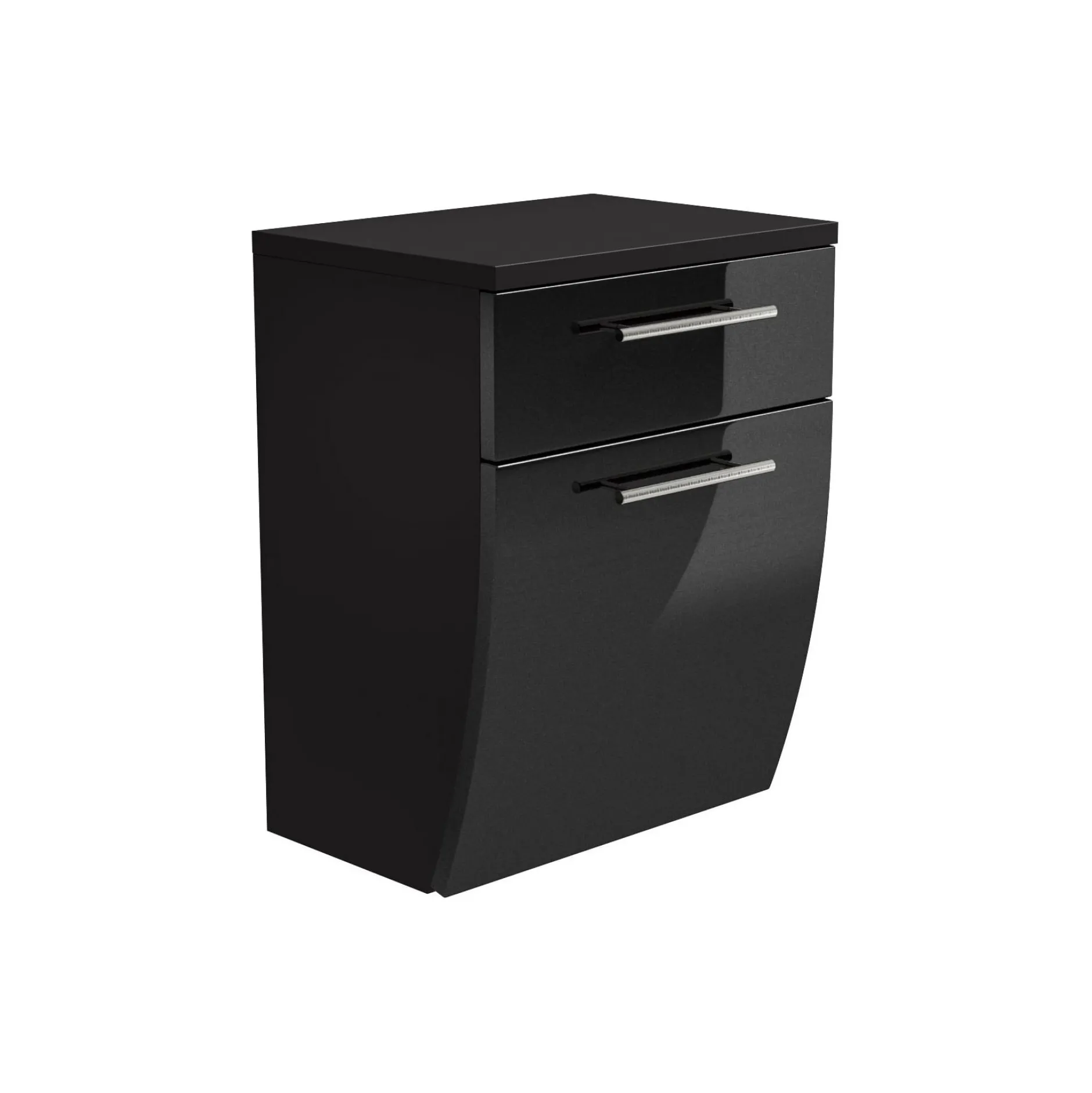 Deze klassieke badkamer kast biedt voldoende opbergruimte voor al je badkamerbenodigdheden. In de lade kun je gemakkelijk je dagelijks spullen kwijt, achter de gebogen klep de schone handdoeken. De hoogglans fronten in combinatie met de metalen handgrepen maken deze kast af. Door zijn melamine afwerking is deze kast gemakkelijk schoon te houden en langer beschermd tegen stof, vuil en krassen. Richt je badkamer in één keer helemaal in met de bijpassende meubelen uit deze serie!