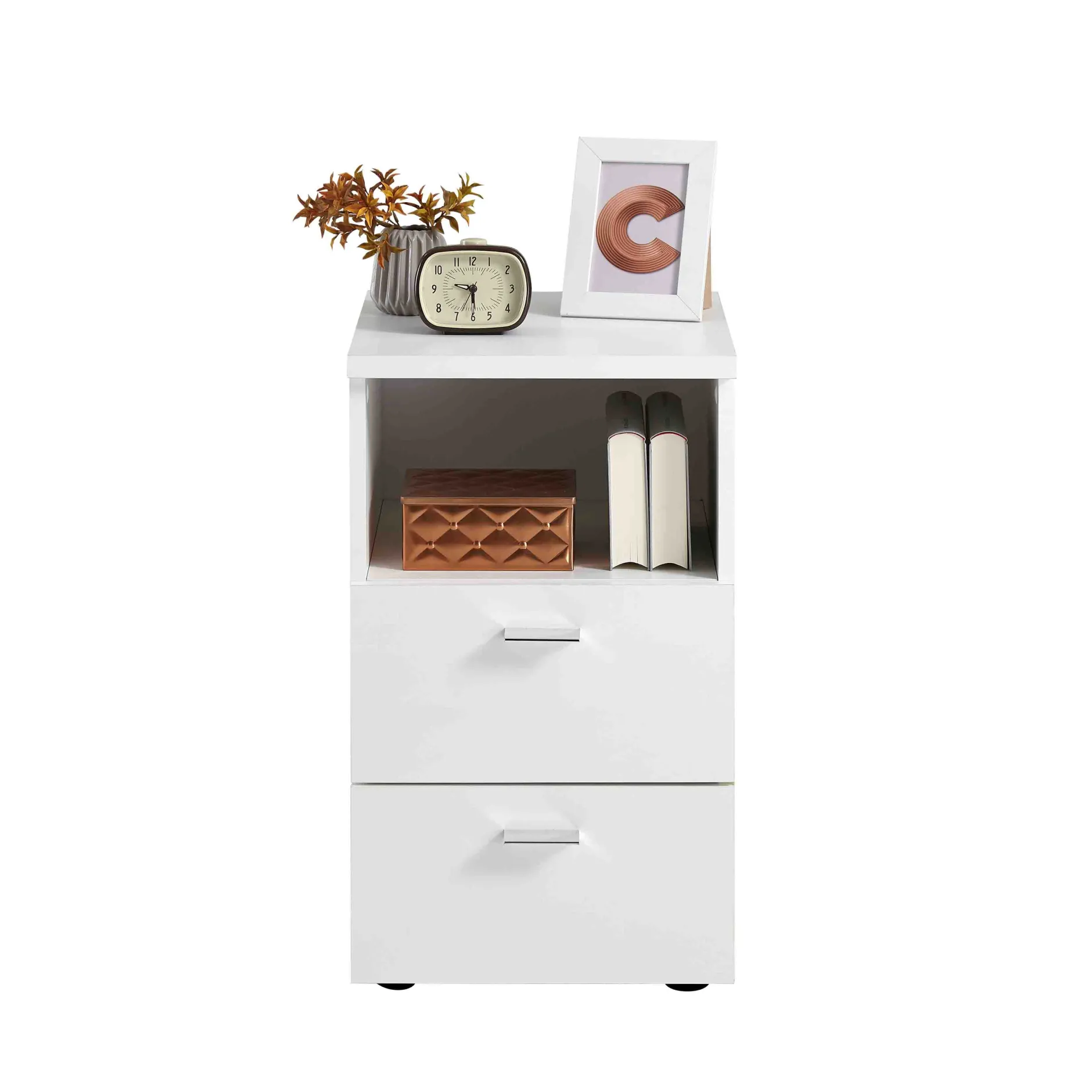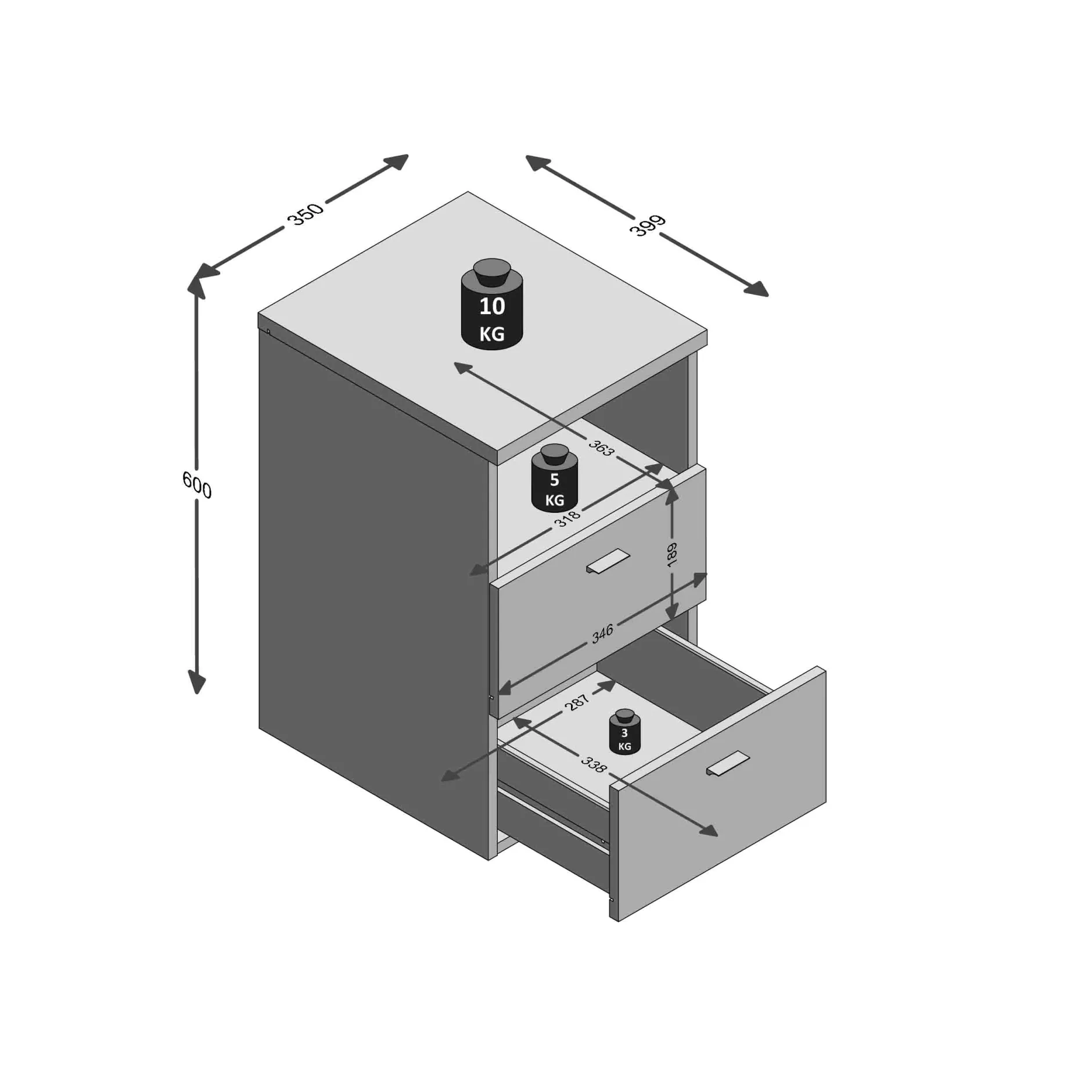 Dit handige nachtkastje heeft een vak onder het blad waar je gemakkelijk je boek of tablet kwijt kunt voor het slapen gaan. Met de 2 lades heb je voldoende opbergruimte, bovenop is plaats voor het nachtlampje. Het nachtkastje is vervaardigd uit een stevige spaanplaat en afgewerkt met een sterke melamine. Eenvoudig te monteren door middel van de bijgeleverde montagehandleiding.