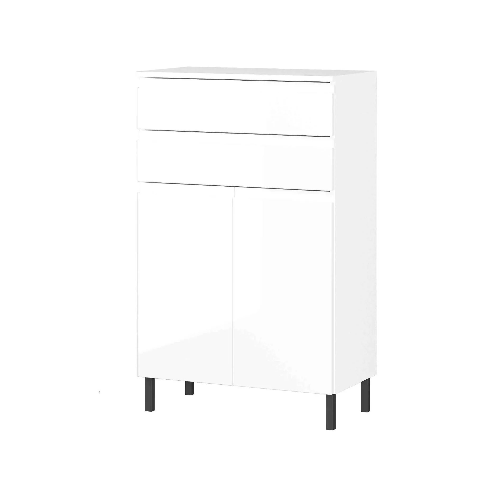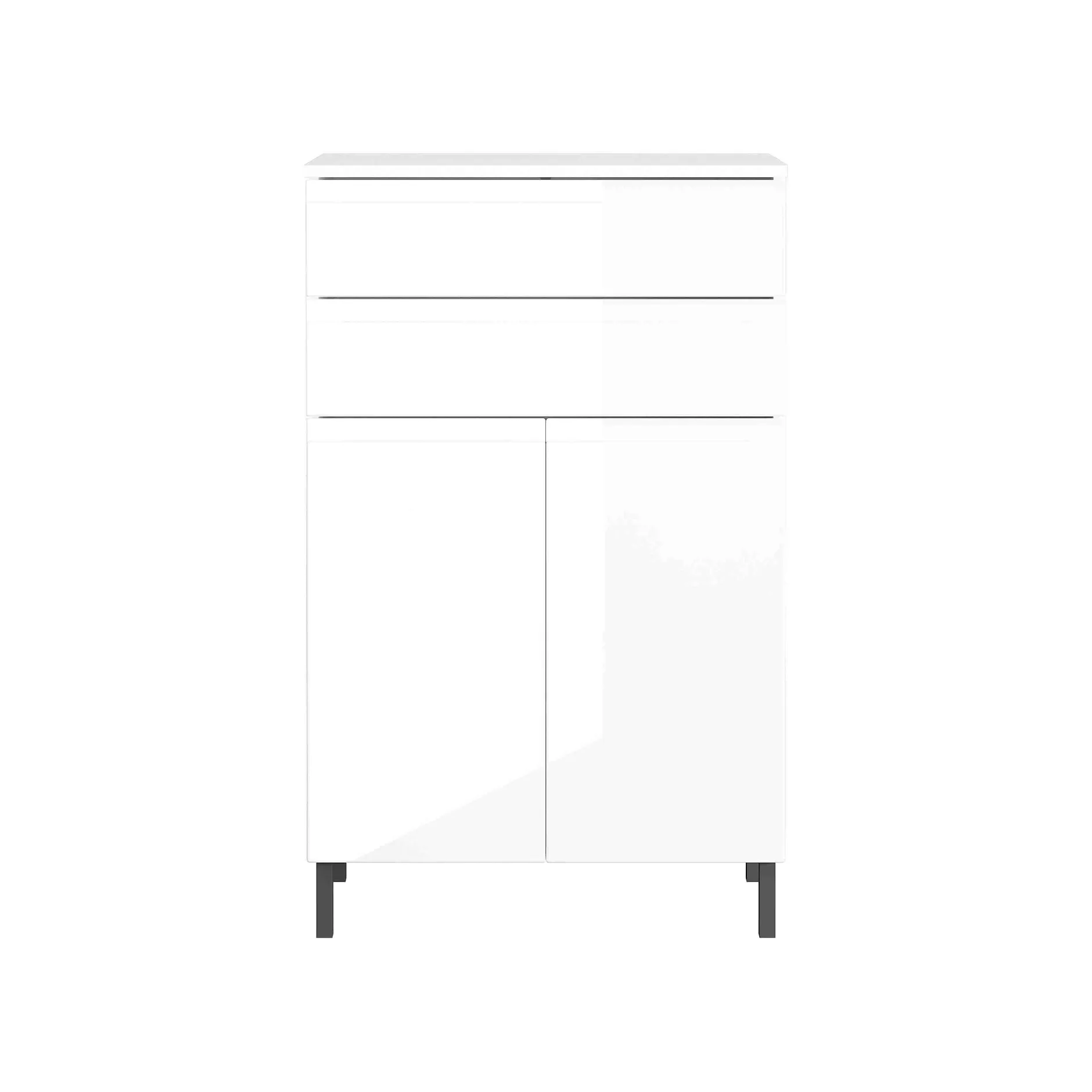 Deze fijne badkamerkast kun je gemakkelijk kwijt door zijn bescheiden diepte van 41 centimeter. Door zijn hoogte van 97 centimeter ben je voorzien van een extra opbergblad naast bijvoorbeeld de wastafel. Voldoende opbergruimte in de 2 laden en achter de 2 deuren, deze ruimte is ook nog naar wens in te delen door de verstelbare legplanken. Gepoedercoat metalen pootjes in combinatie met geruisloos sluitende deuren en laden maken dit meubelstuk helemaal af. Geproduceerd in Duitsland, dit staat voor degelijke kwaliteit en een lange levensduur. Gemakkelijk te monteren doormiddel van de meegeleverde montagehandleiding. Bekijk ook de andere elementen uit deze badkamerserie!