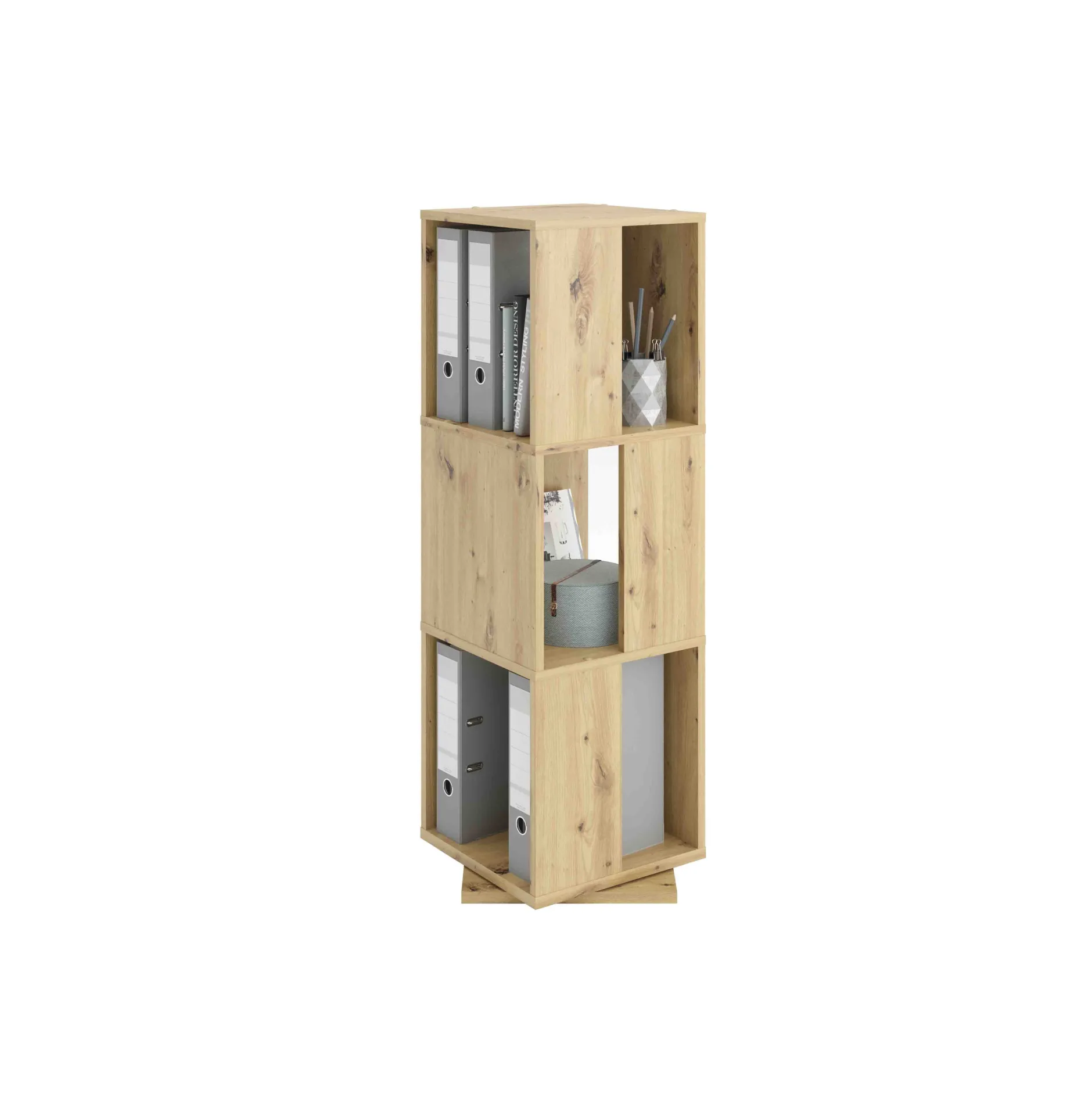 Deze enorm handige ordnerzuil is te gebruiken op allerlei verschillende manieren. Gebruik hem bijvoorbeeld als decoratiestaander in je keuken of woonkamer of plaats je ordners, naslagwerken en boeken hierin. Deze zuil is vervaardigd uit een stevige spaanplaat en afgewerkt met een sterke melamine. Eenvoudig te monteren door middel van de bijgeleverde montagehandleiding.
