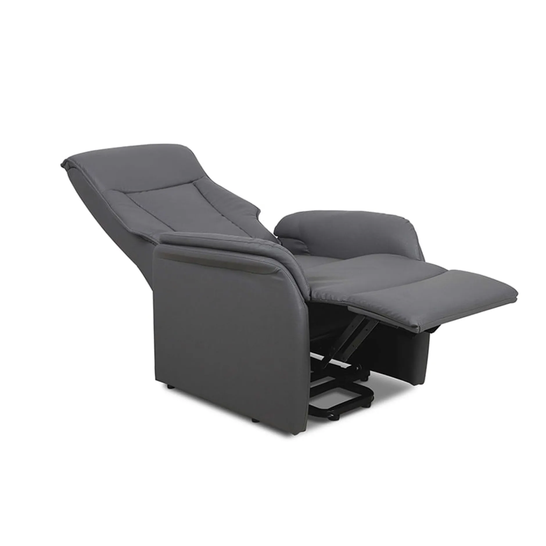 In deze moderne fauteuil verdwijnt de stress als sneeuw voor de zon. Hierin kun je na een vermoeiende dag heerlijk tot jezelf komen. De fauteuil is met een druk op de knop in de verschillende posities te zetten. Met het naar achter brengen van de rug komt tegelijkertijd de voetensteun mee naar boven voor een ideale ondersteuning van de benen. Deze relaxfauteuil is modern comfortabel gestoffeerd maar toch met behoud van een slanke vormgeving, door zijn metalen onderstel staat hij stevig op de grond. Maximaal belastbaar gewicht 110 KG.