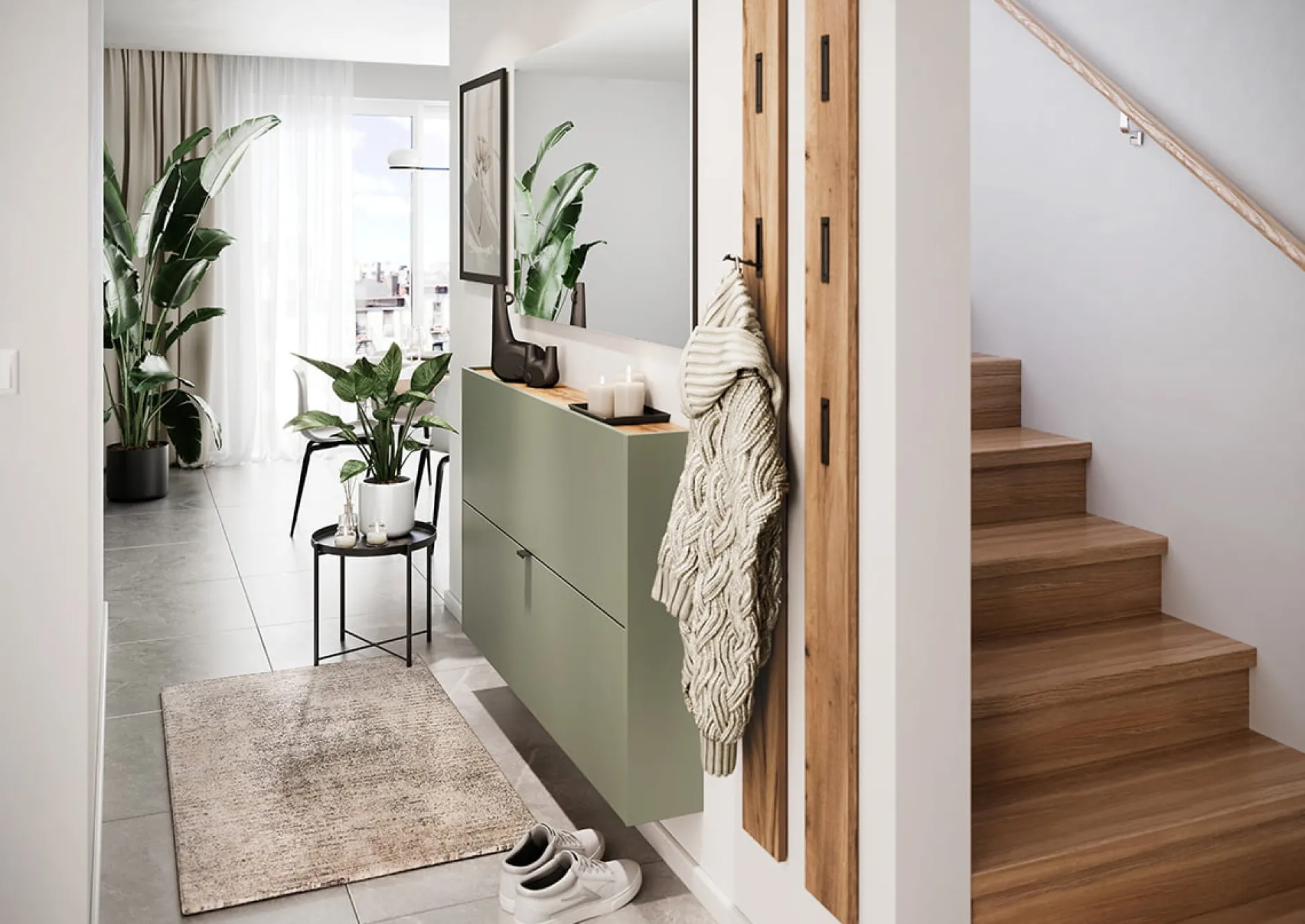 De kast is voorzien van een krasbestendige en duurzame oppervlaktecoating, schok- en stootbestendige randen, en heeft een ondiepe diepte, waardoor hij ideaal is voor smalle gangen. De kleppen sluiten langzaam, zachtjes en geruisloos dankzij de geïntegreerde demper.