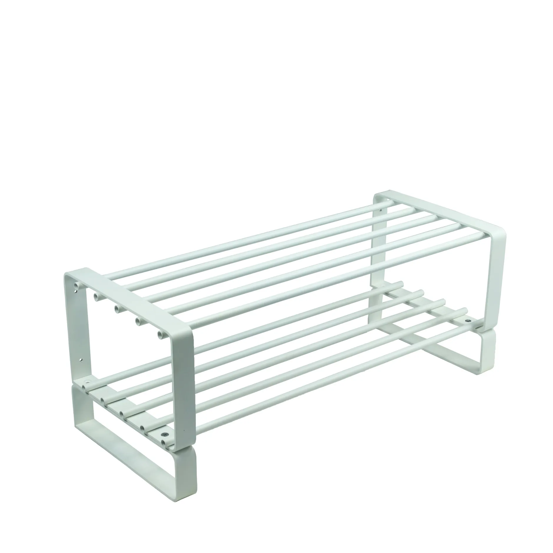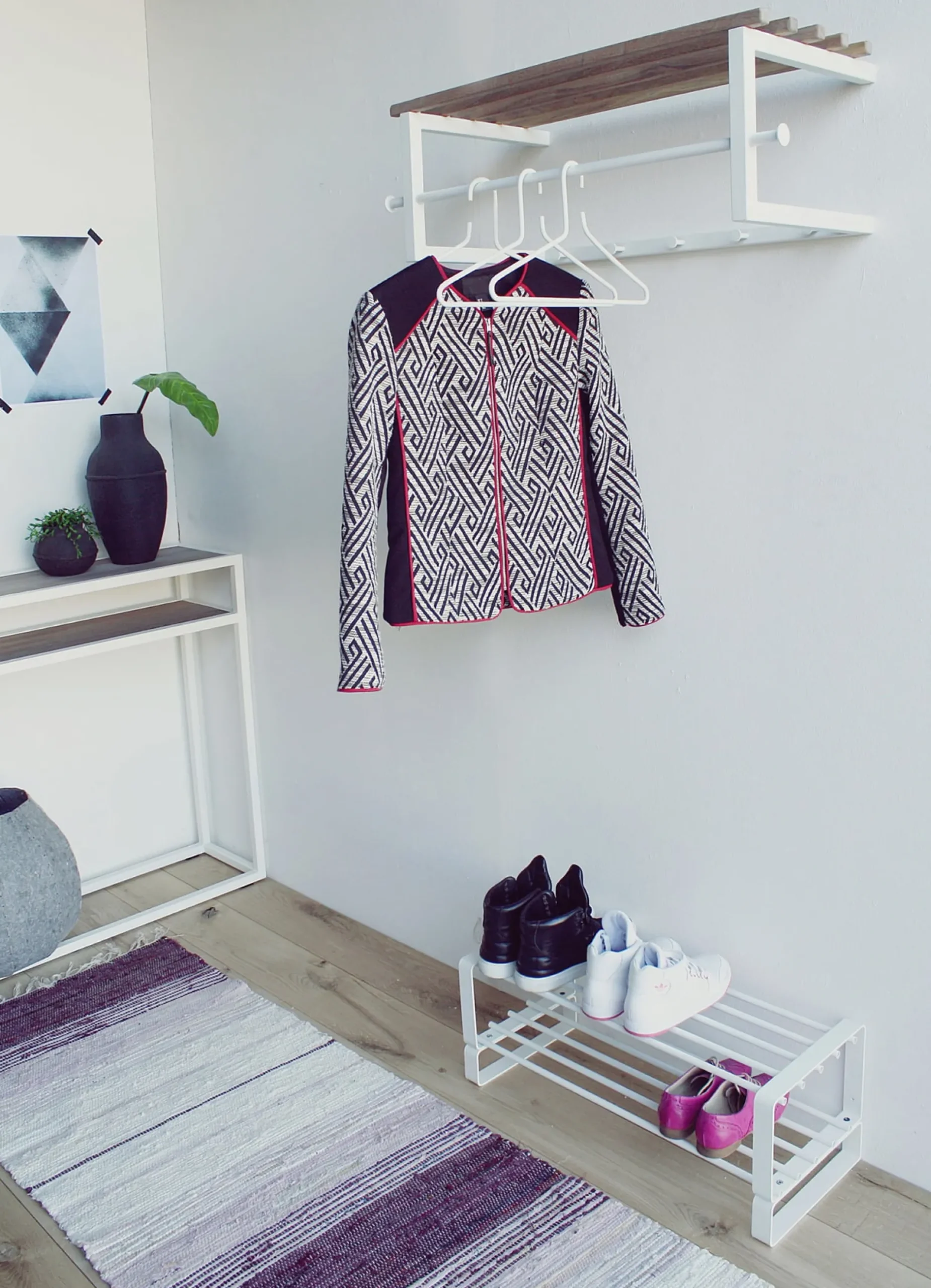 Het schoenenrek is volledig gemaakt van hoogwaardig metaal en afgewerkt in een sterke witte fijnstructuur poedercoat. Voor meerdere paren schoenen een mooie plaats.