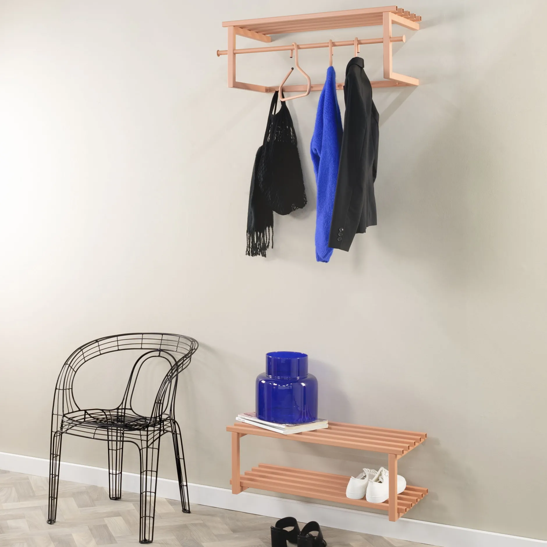 Met dit degelijke schoenenrek ben je verzekerd van een opgeruimde hal. Het schoenenrek is vervaardigd van een stevig staal en afgewerkt met een sterke poeder coating. Je bergt gemakkelijk 6 paar schoenen op in dit rek en het is leuk te combineren met de andere elementen uit deze collectie!