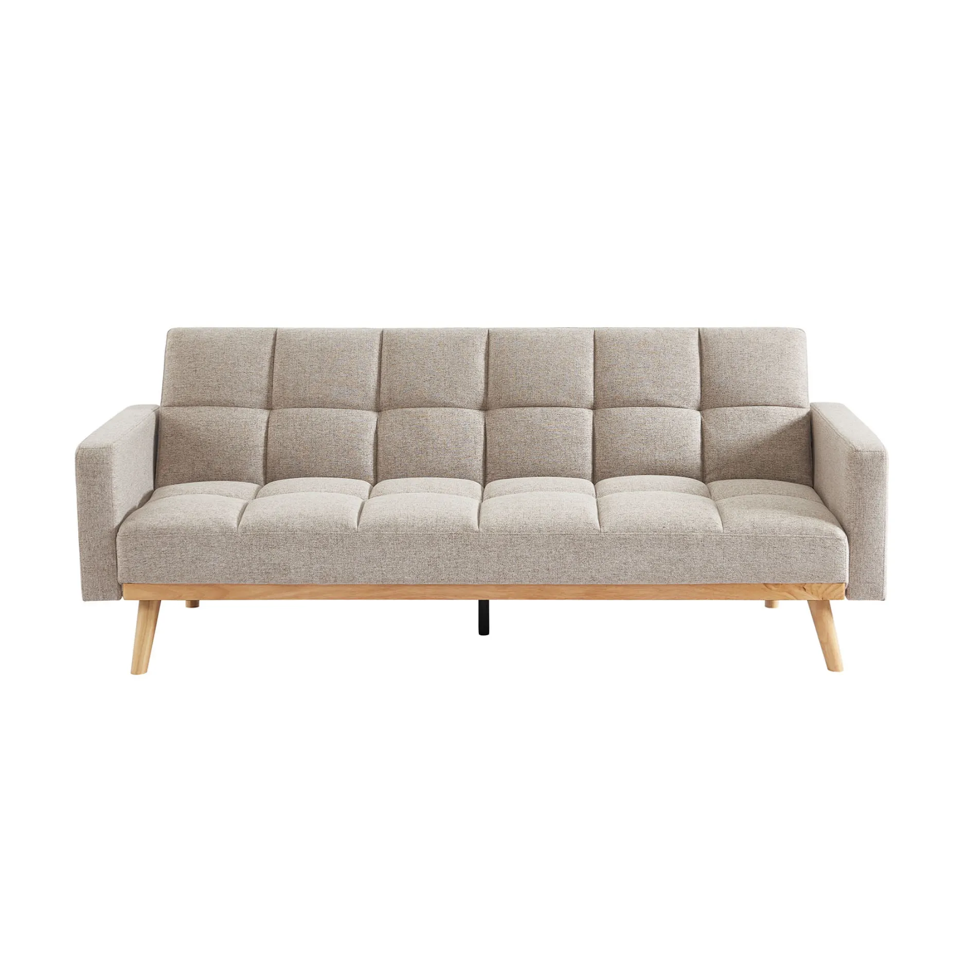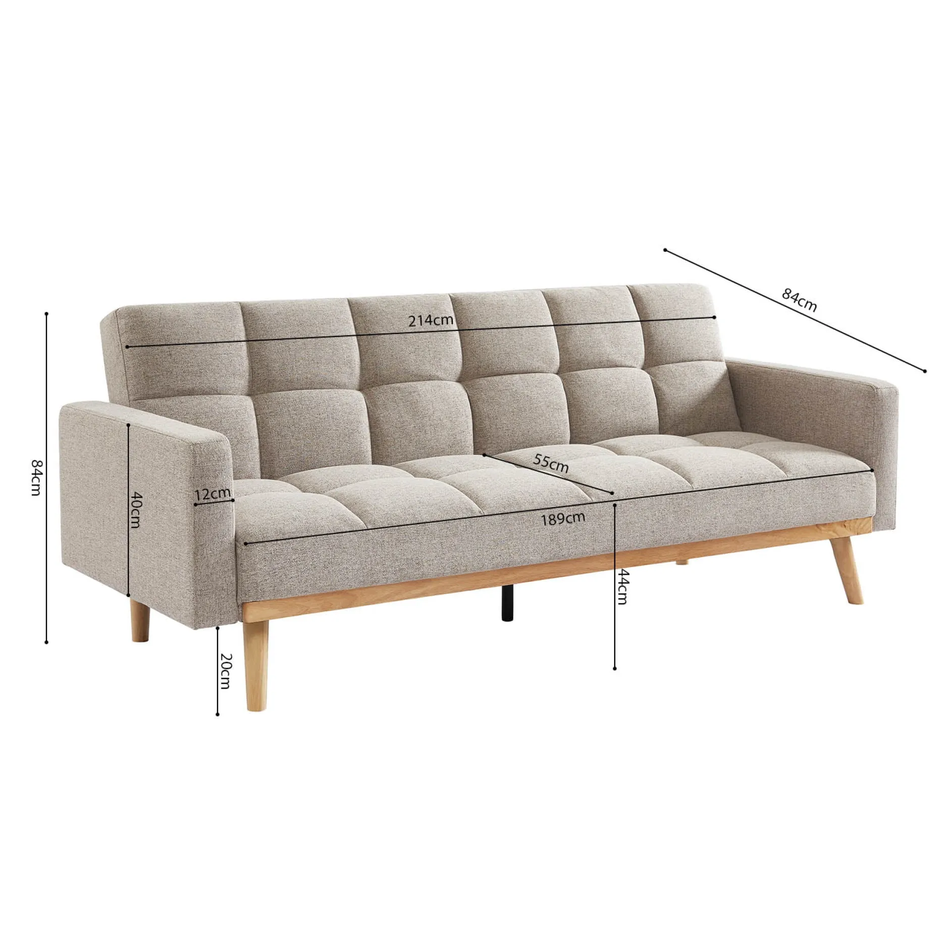 Deze stijlvolle bank is een aanwinst voor in elke woon- of slaapkamer, je tovert hem eenvoudig om tot een slaapbank voor een extra plek voor je gast! De bank heeft een zithoogte van 44 cm en een zitdiepte van 55 cm. De bank heeft een houten eucalyptus houten frame en een goed zit- en ligcomfort door zijn koud schuim matras.