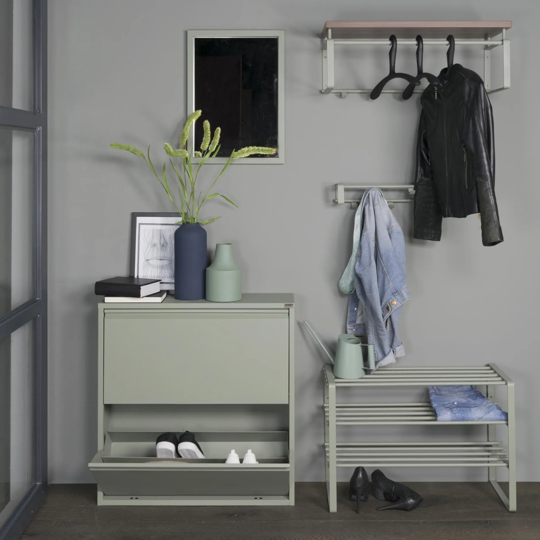 Voor deze handige ruimtebesparende spiegel is in elke hal of slaapkamer plaats. Goed te combineren met de andere producten uit deze serie! Vervaardigd uit degelijk metaal, afgewerkt met een mooie coating.