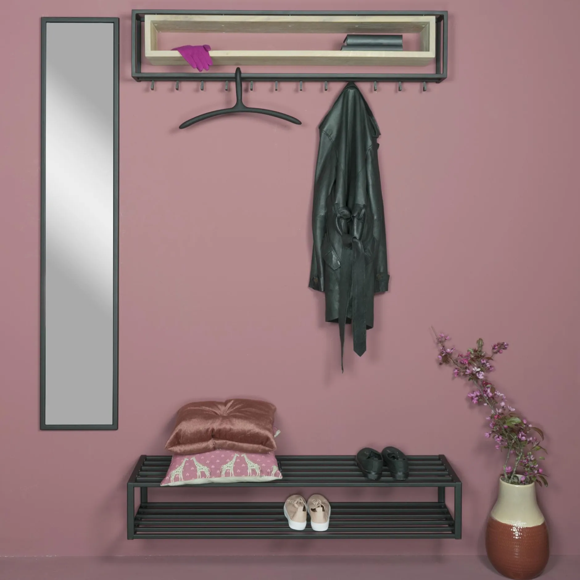 Voor deze handige ruimtebesparende spiegel is in elke hal plaats. De spiegel is zowel horizontaal als verticaal te bevestigen en vervaardigd uit degelijk metaal, afgewerkt met een zwarte structuur coating. Leuk te combineren met de rest van de producten uit deze serie!