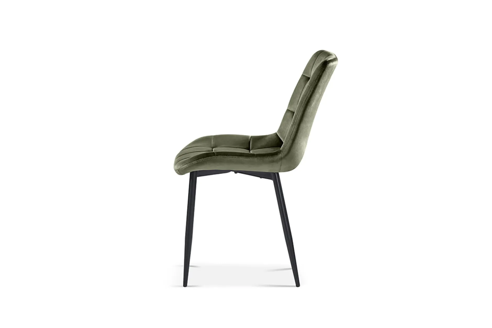 Deze moderne comfortabele stoel is bekleed met een zachte velours stof. Het blokpatroon in combinatie met zijn zwarte metalen poten geeft deze eetkamerstoel een leuke extra dimensie. De stoel heeft een zithoogte van 47 cm en een zitdiepte van 44 cm. Verkrijgbaar in meerdere kleuren.