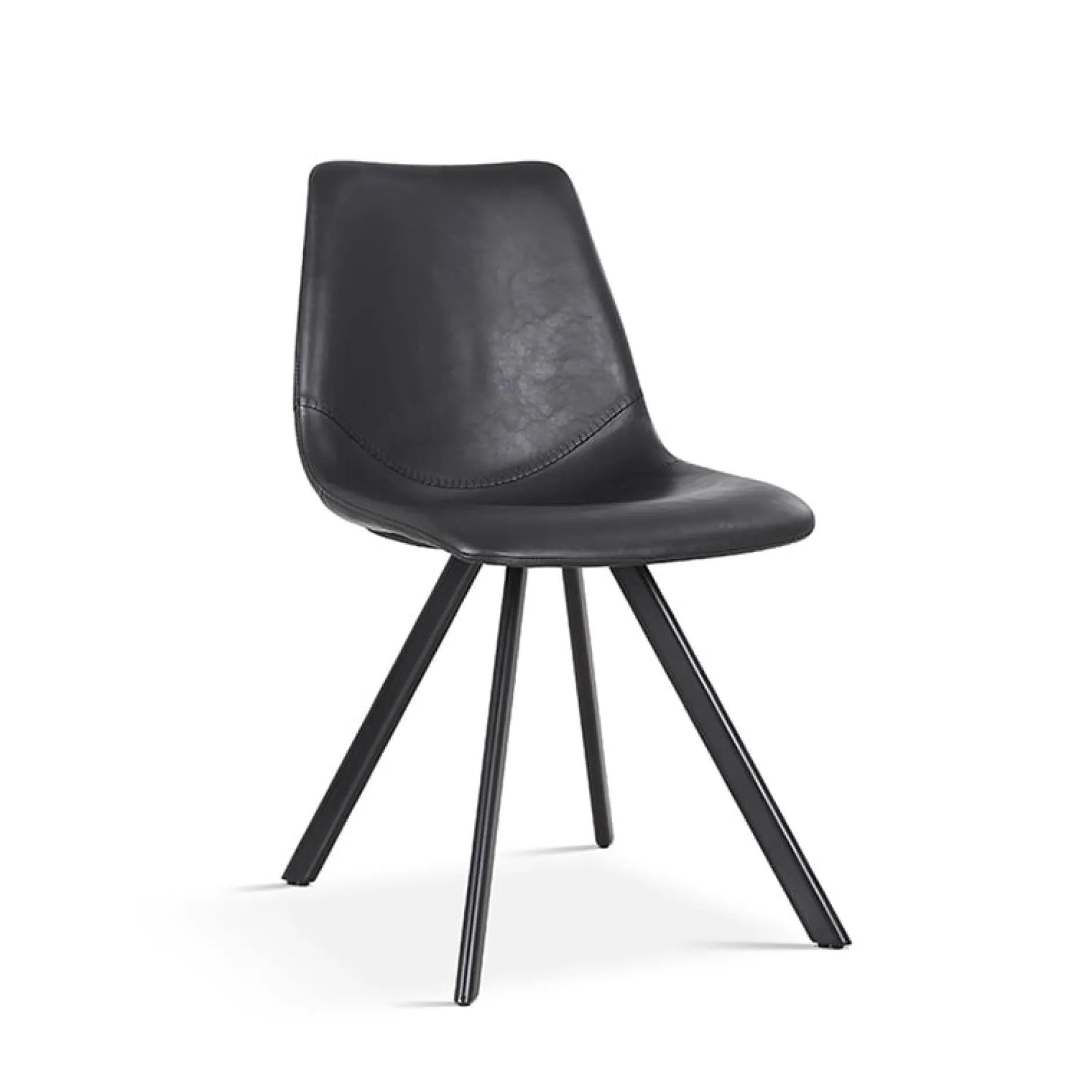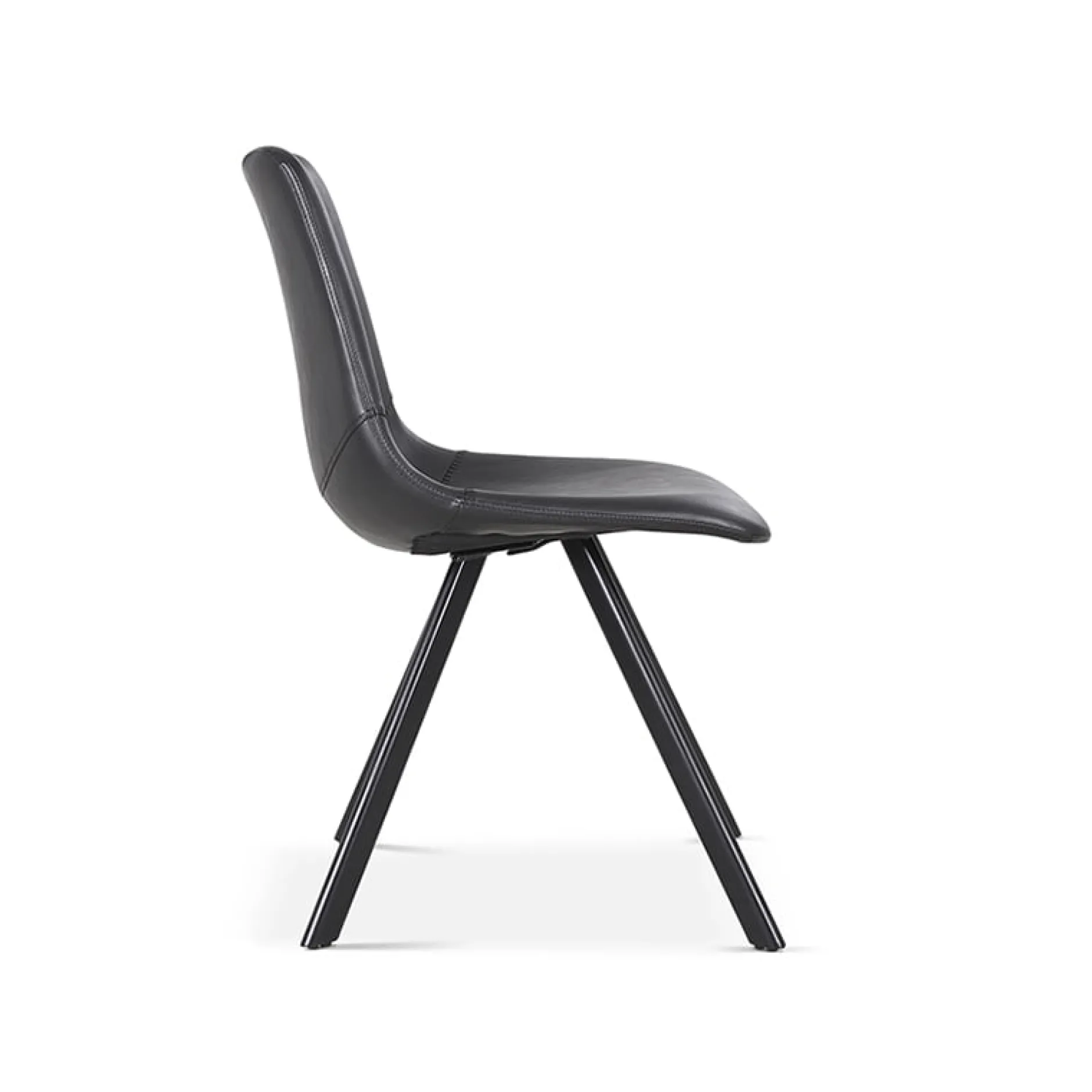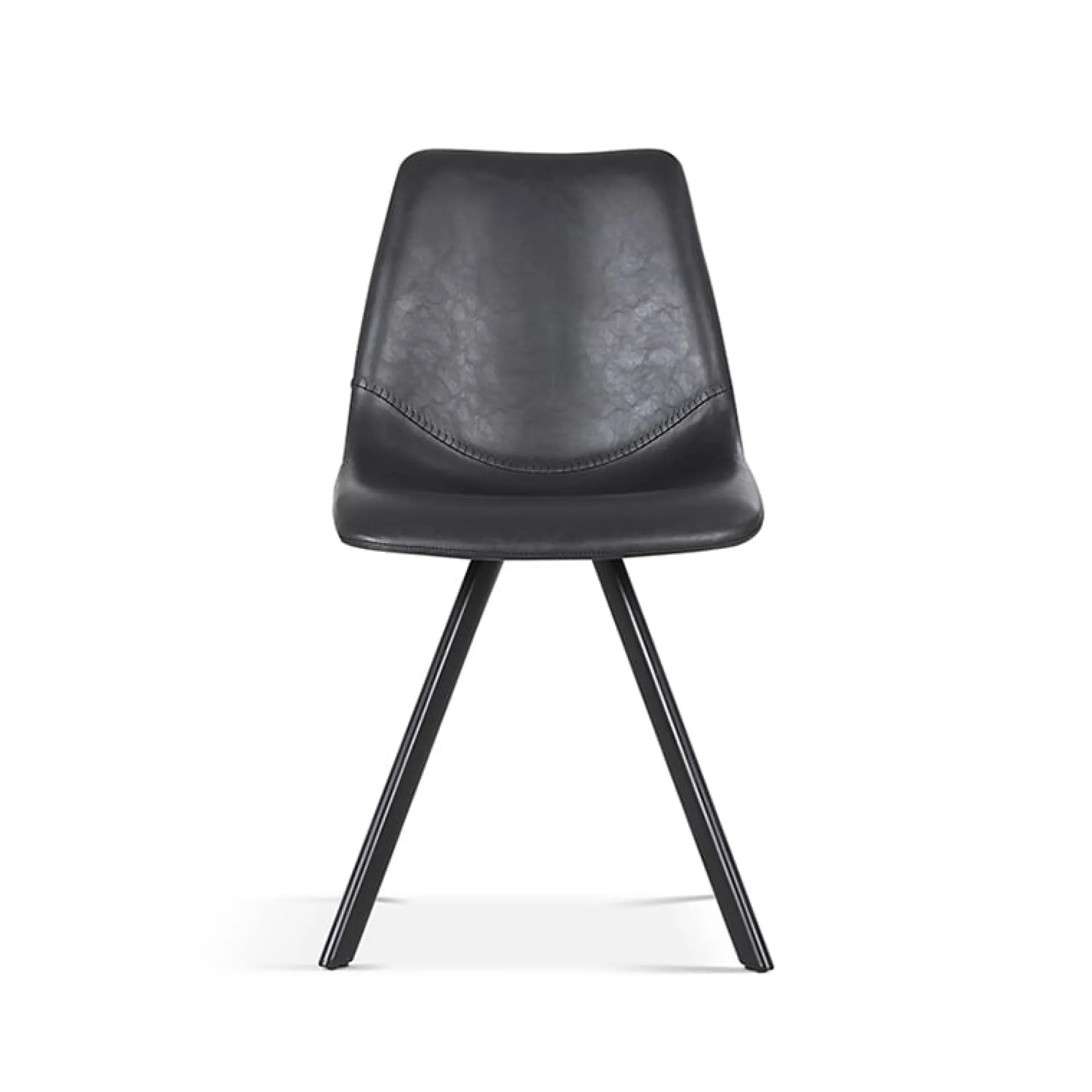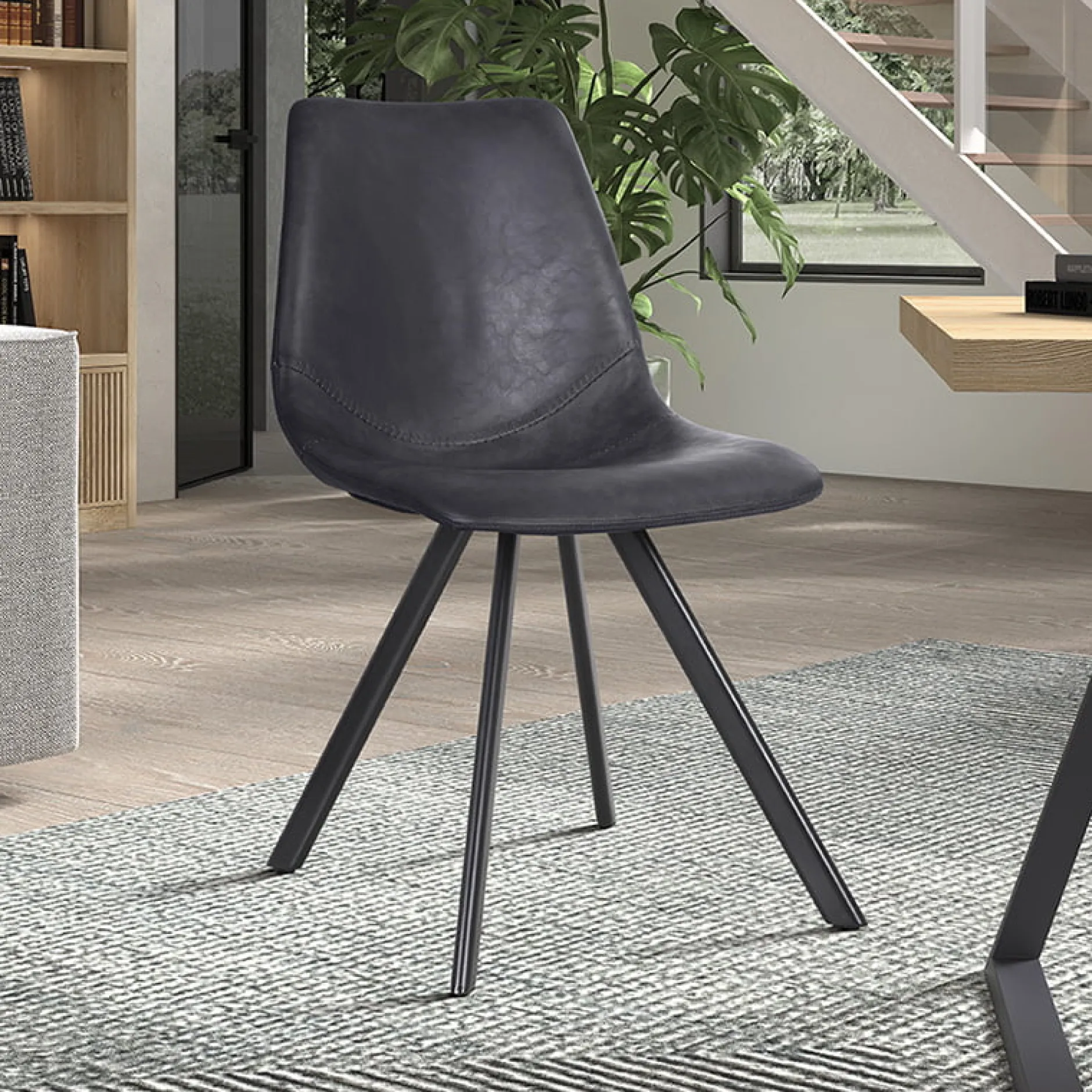 Deze stoere vintage stoel heeft strakke metalen poten en is door zijn eenvoud toepasbaar in vele interieurs. Het stikpatroon onderin de rug maakt de stoel af. Deze stoel heeft een zithoogte van 50 cm en een zitdiepte van 43 cm. Hij is verkrijgbaar in de kleuren bruin, zwart, grijs en cognac.