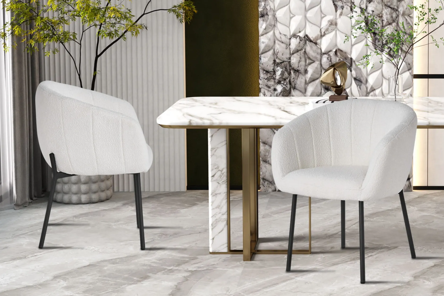 Met de Stoel Pia in grijze bouclé voeg je een vleugje verfijning toe aan je interieur. Deze set van 2 stoelen heeft een zithoogte van 48 cm en een zitdiepte van 44 cm, wat zorgt voor een comfortabele zitplaats. Het grijze bouclé materiaal geeft de stoelen een eigentijdse uitstraling en past perfect in moderne interieurs. Geniet van stijl en comfort in je eetkamer met de Stoel Pia – Set van 2.