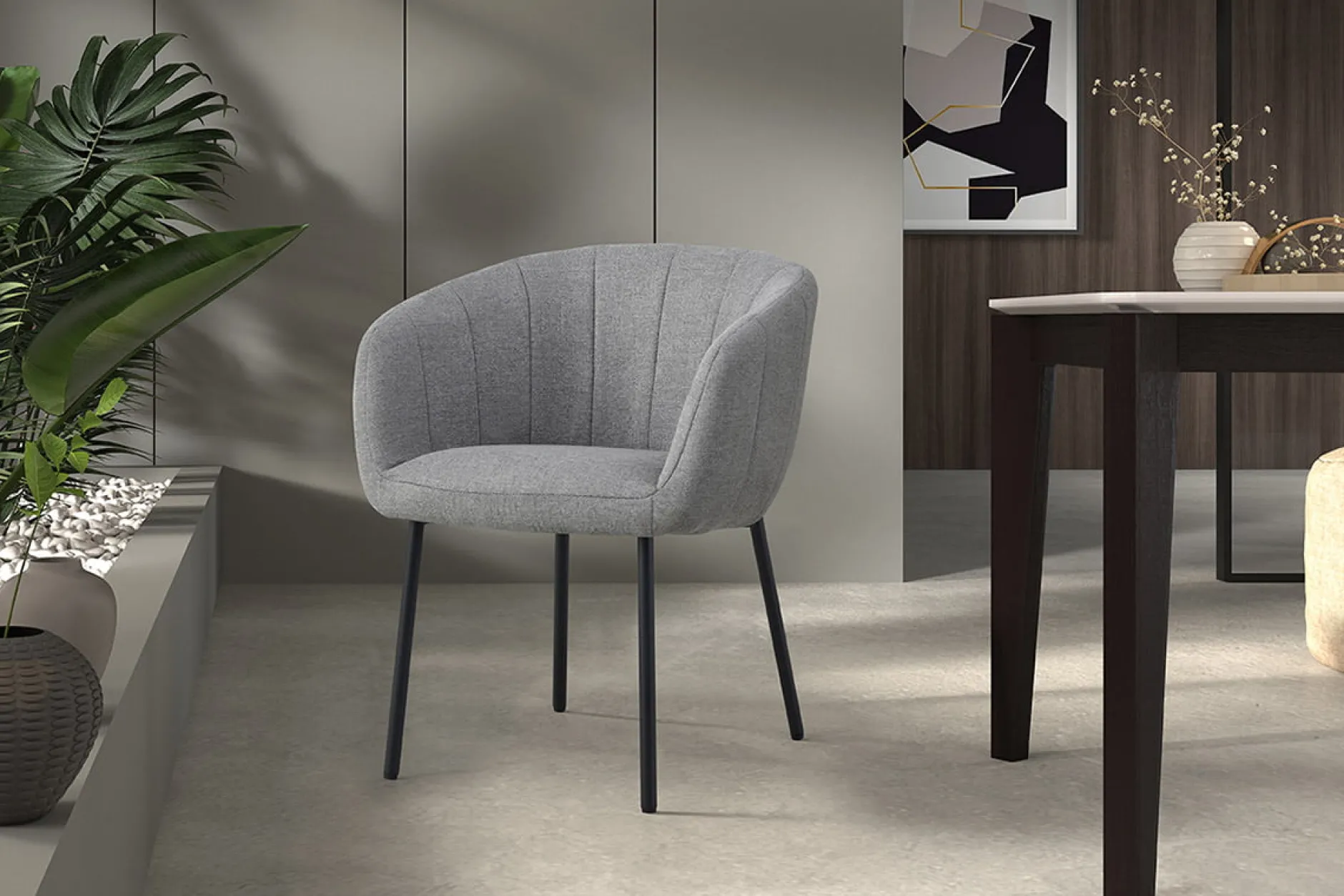Deze leuke eetkamerstoel is door zijn speelse design een aanwinst voor elk eet- of woonkamer. De zwarte ronde metalen poten gecombineerd met een goed zitcomfort maakt deze stoel af. De stoel is verkrijgbaar in meerdere kleuren waardoor je leuk kunt variëren! Deze stoel heeft een zithoogte van 48 cm en een zitdiepte van 44 cm, de armleuningen zijn 24 cm hoog. Verkrijgbaar in meerdere kleuren.