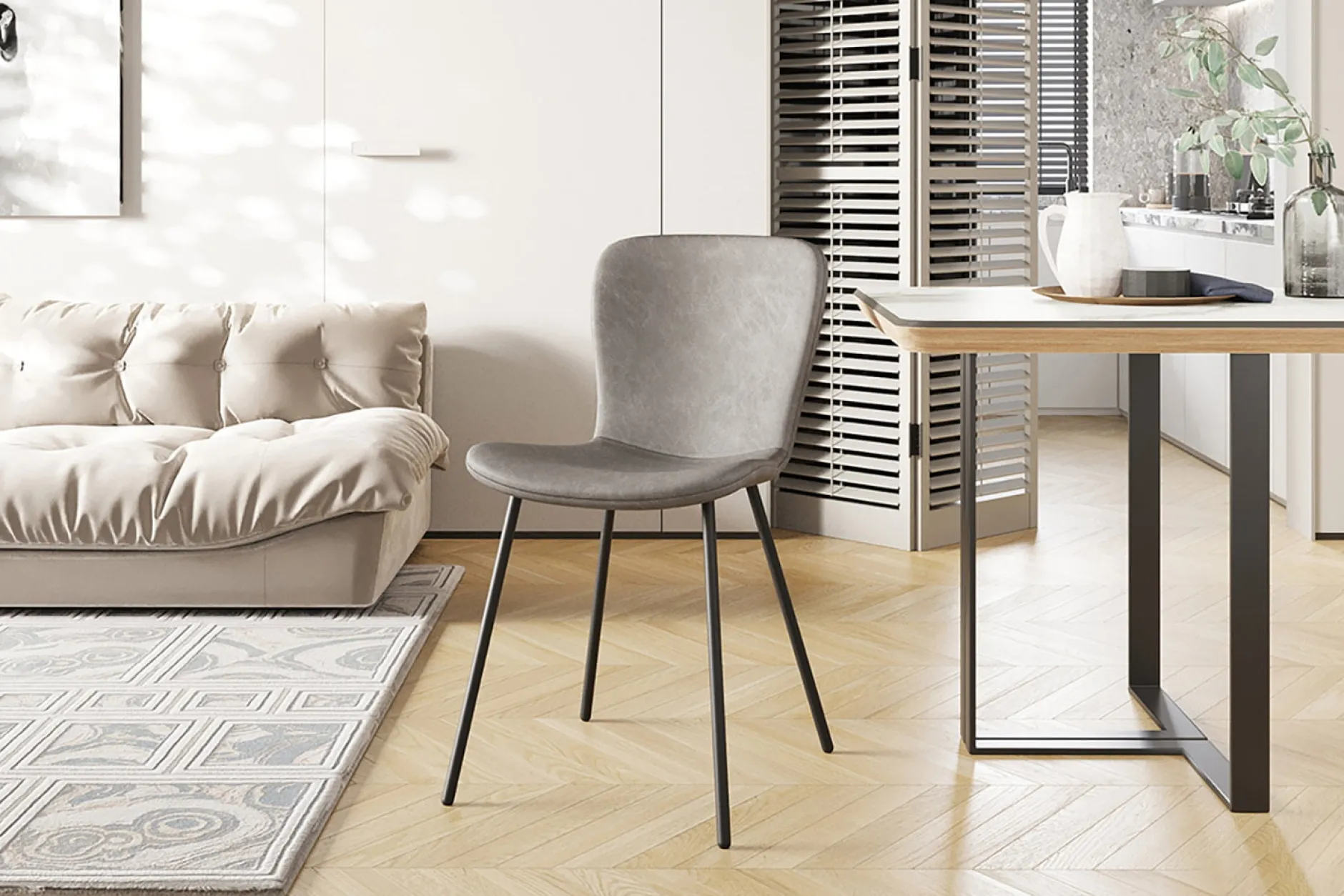 Deze moderne stoel heeft strakke metalen poten en is door zijn eenvoud toepasbaar in vele interieurs. Het stikpatroon gecombineerd met het rits patroon aan de achterzijde maakt deze stoel uniek. Deze stoel heeft een zithoogte van 47,5 cm en een zitdiepte van 39 cm. Hij is verkrijgbaar in meerdere kleuren.