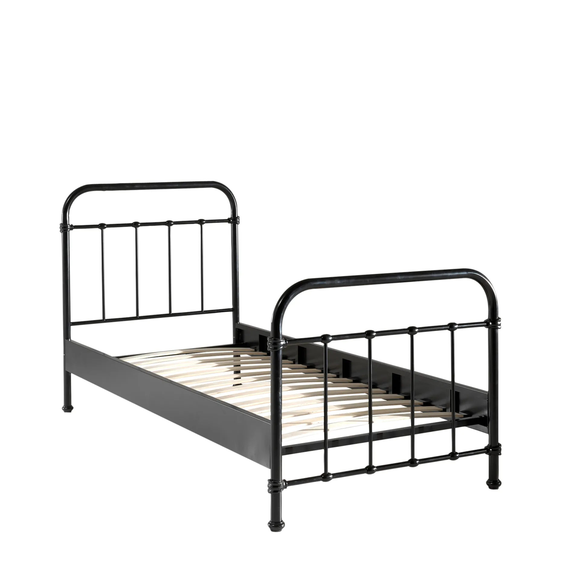 Dit elegante, romantische maar authentieke tienerbed heeft een hoog hoofd- en voeteneinde en wordt geleverd incl. een stevige lattenbodem. Het is verkrijgbaar in zes kleuren namelijk wit, zwart, blauw, rood, mint of geel. Het bed is vervaardigd uit stevig, gebogen gelakt metaal. In het bed past elke matras van 90 x 200cm uit de collectie van huisenthuis.nl. Deze dien je apart bij te bestellen.