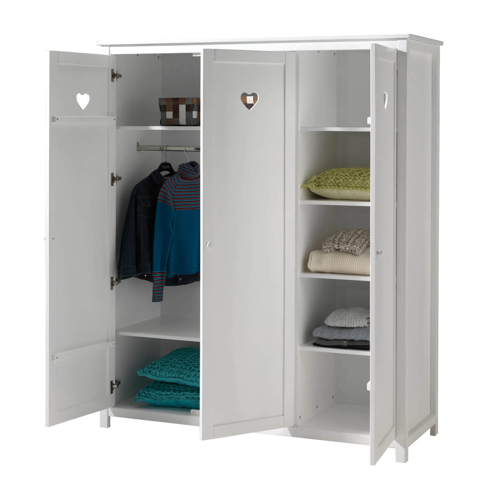 Met deze 3-deurskast heb je heel veel ruimte voor het opbergen van een complete garderobe. Achter de 2 linker deuren liggen twee legplanken en een kledingroede. Achter de rechterdeur heb je 5 vakken voor het opbergen van allerlei kleine kledingstukken als ondergoed, sokken etc.