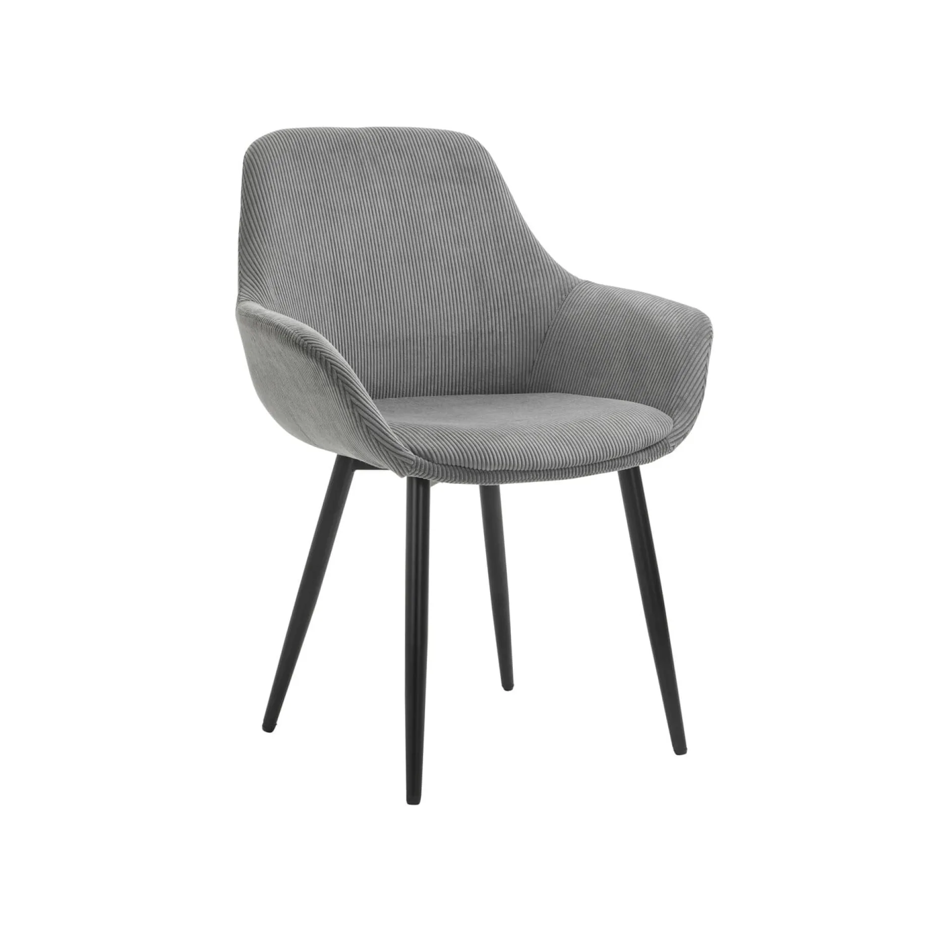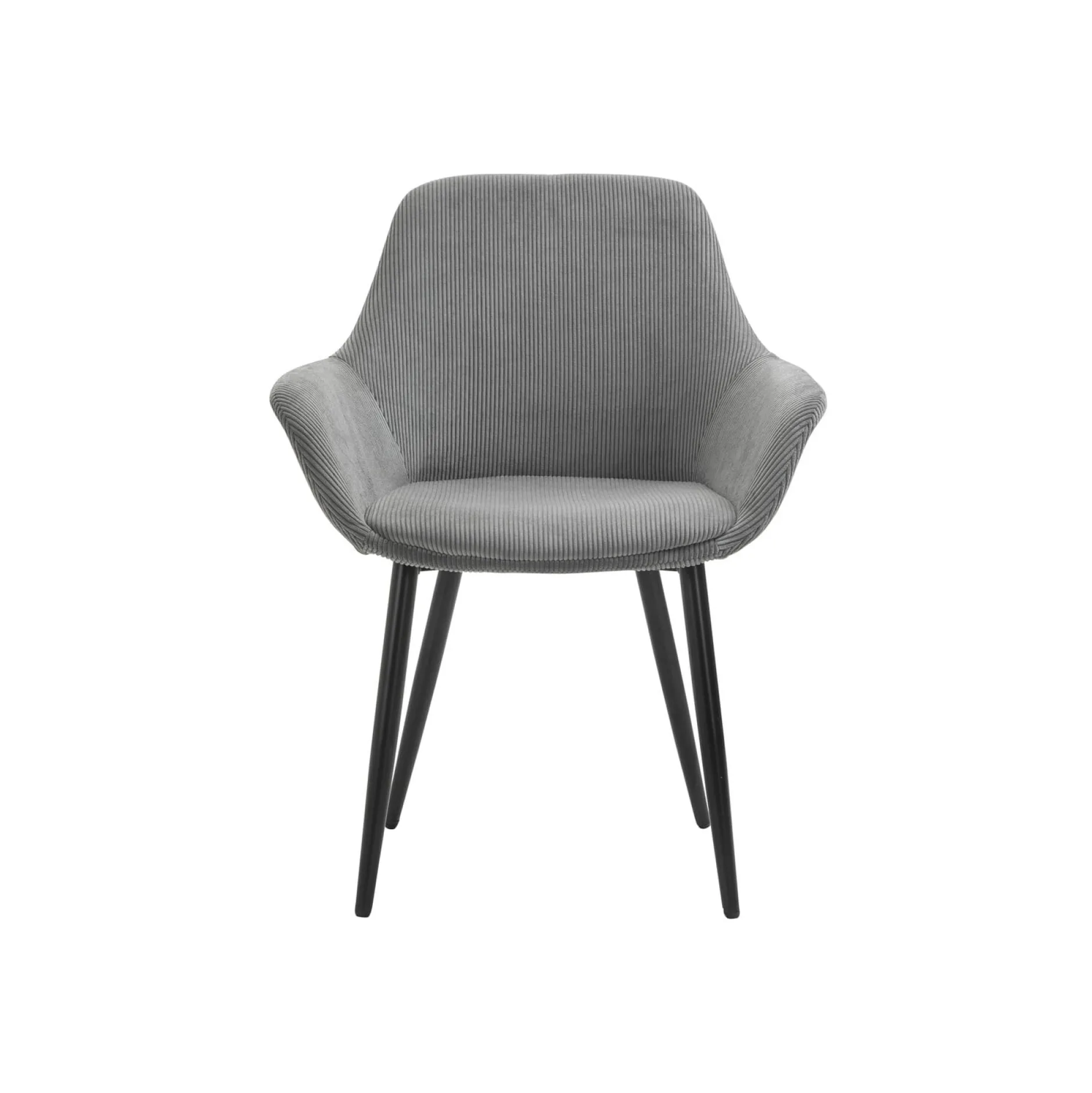 Breng een stijlvolle en moderne sfeer in je interieur met deze set van 2 armstoelen in een chique grijze riblook. De stoelen hebben stevige, mat zwart poedergecoate poten die zorgen voor een strakke en tijdloze uitstraling.