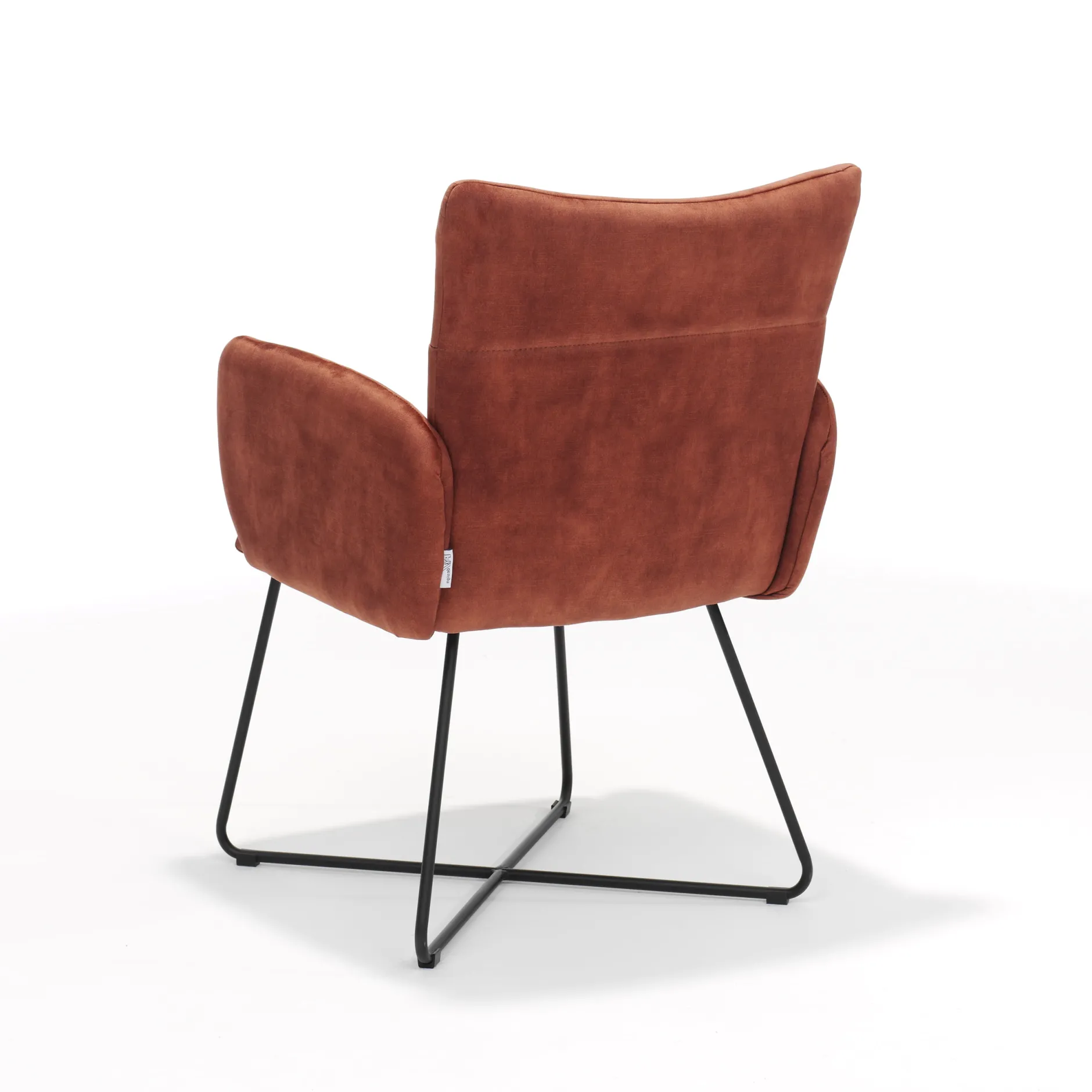 Deze chique en luxe eetkamerfauteuil is gemaakt van prachtig glanzend velours materiaal. De zitting rust op een strak zwart metalen onderstel en heeft hierdoor een vintage uitstraling. Armstoel Elisa is verkrijgbaar in de kleuren Antraciet, Oranje, Groen en Geel en is uitsluitend te bestellen per twee stuks.