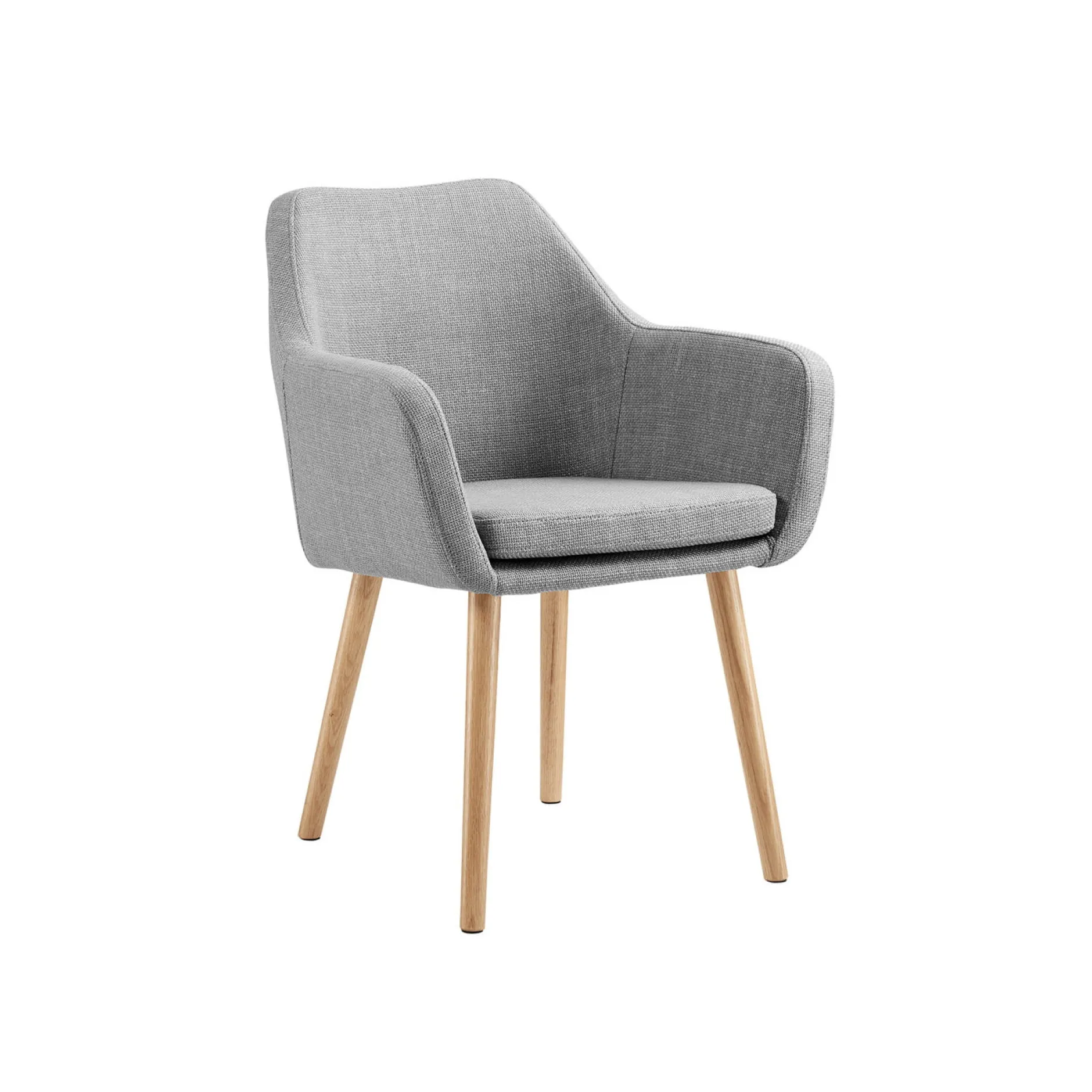 Deze fauteuil in lichtgrijze gestructureerde stof biedt zowel comfort als een verfijnde uitstraling, ondersteund door poten van massief eikenhout. Met een zithoogte van ongeveer 48,5 cm, een zitbreedte van 44 cm en een zitdiepte van 44,5 cm, biedt deze stoel een ergonomische zitervaring. De armleuningen hebben een hoogte van 67 cm en de rugleuning is 42 cm hoog. De stevige poten, met een hoogte van 39 cm, zorgen voor stabiliteit en duurzaamheid.