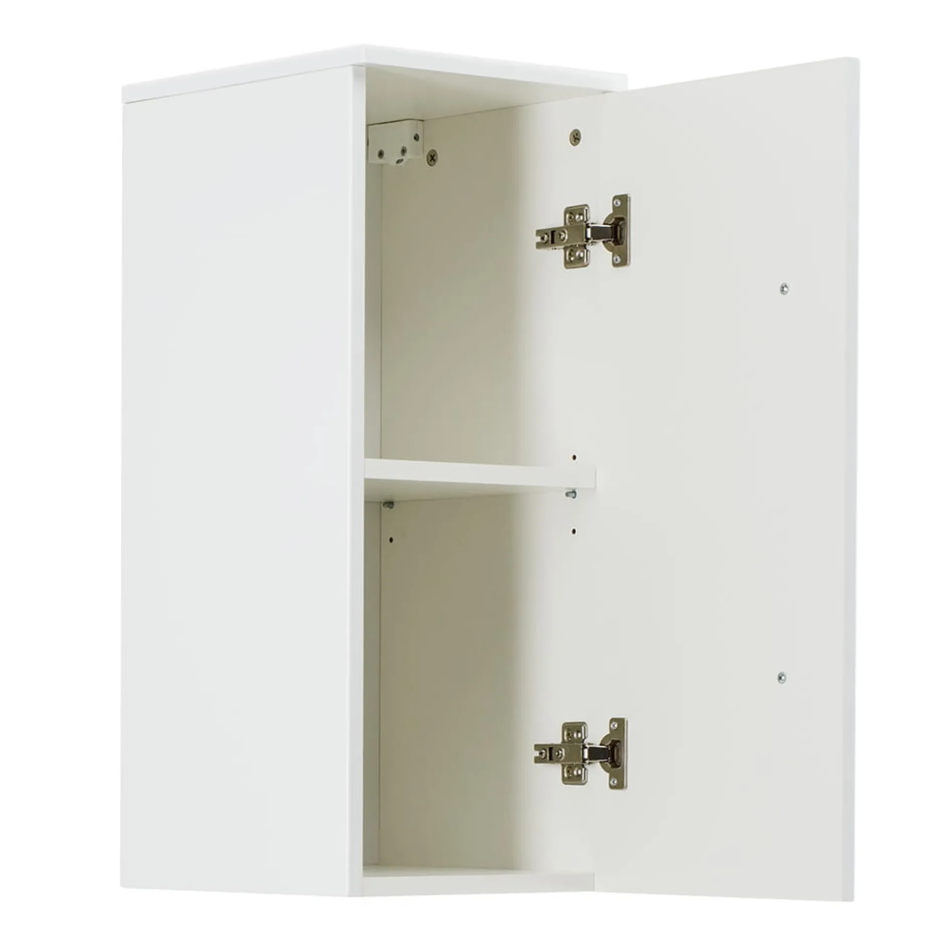 Dit kastje met zijn praktische afmetingen kun je in vrijwel elke badkamer kwijt! Achter de deur bevindt zich 1 verstelbare legplank om al je spullen op kwijt te kunnen. De deuren zijn voorzien van een soft-close systeem met een rvs-handvat. Door zijn melamine afwerking is deze kast gemakkelijk schoon te houden en langer beschermd tegen stof, vuil en krassen. Uitermate geschikt voor gebruik in de badkamer. De deur kan zowel links als rechts gemonteerd worden, deze kast is 30 cm breed, 70,5 cm hoog en 33 cm diep en is ook verkrijgbaar in het antraciet en eiken.