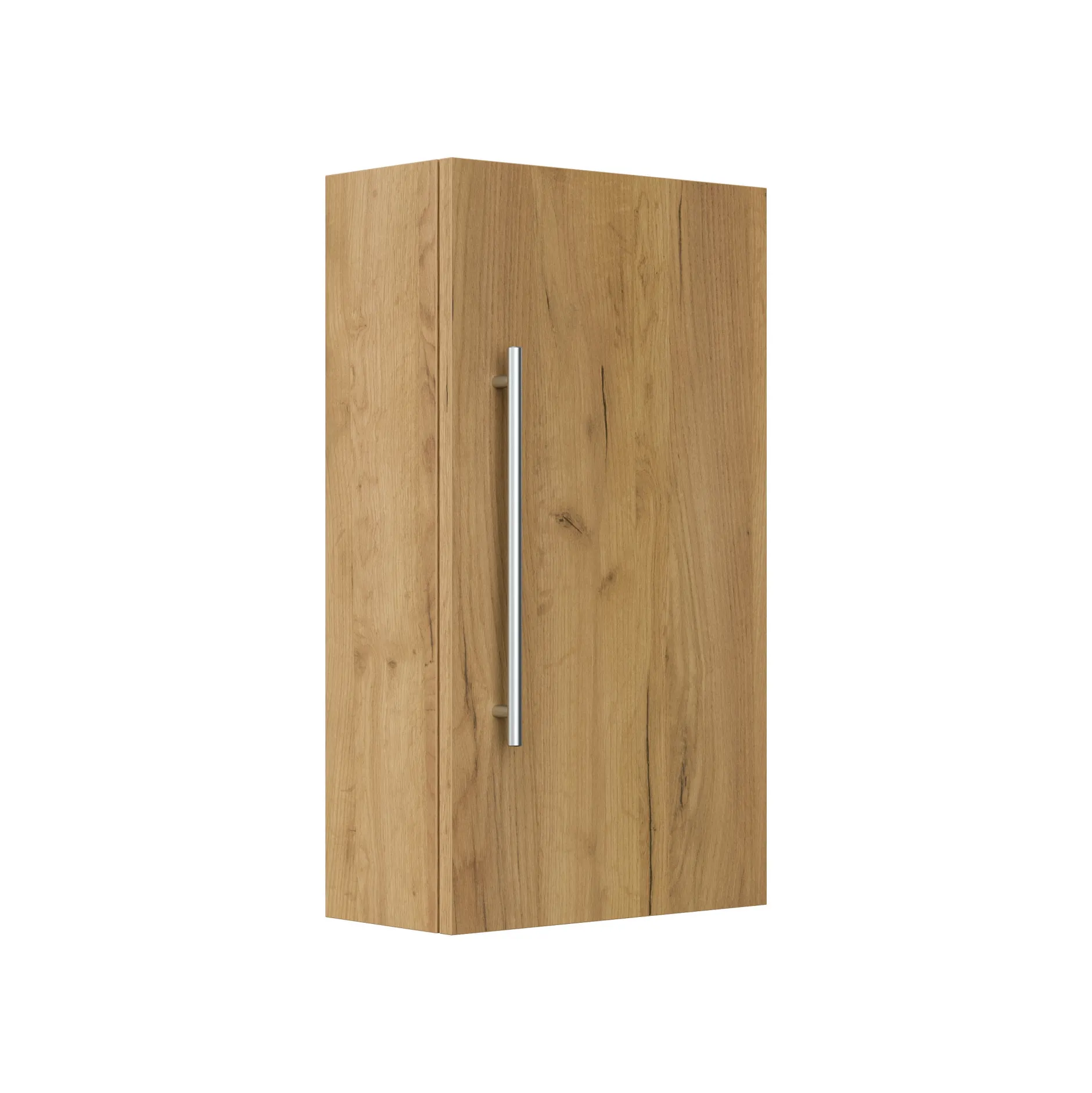 De Badkamerkast Houston Eiken 62 cm brengt een warme en natuurlijke sfeer in je badkamer. Ontworpen in Duitsland en vervaardigd uit hoogwaardig spaanplaat, is deze kast afgewerkt in een realistische eiken Gold-look voor een authentieke houtuitstraling. Met soft-close deuren en laden biedt deze kast praktische opbergruimte. De afmetingen zijn 35 cm breed, 62 cm hoog en 16,6 cm diep, en het gewicht bedraagt 8 kg.