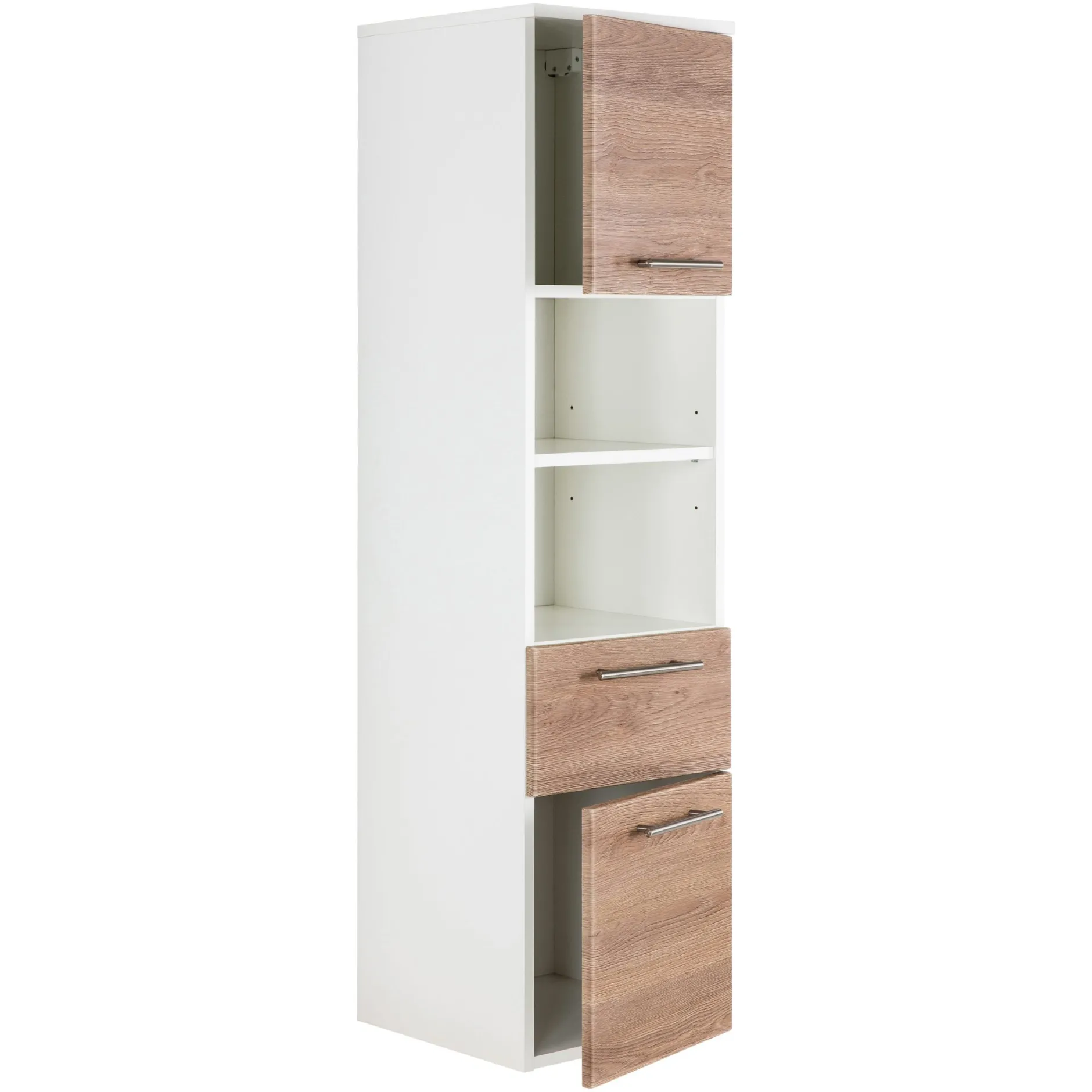 Deze hangkast heeft een breedte van 35,2cm, een hoogte van 134,5cm en een diepte van 36,8cm. De kast heeft een lade, twee deuren en in totaal 4 planken om spullen op te bergen. In badkamerserie Ivar zijn verschillende afmetingen badkamerkasten verkrijgbaar Small, Medium, Large en Extra-Large. Deze kunnen worden uitgevoerd in hoogglans wit, zwart, antraciet, beton-look en eiken.
