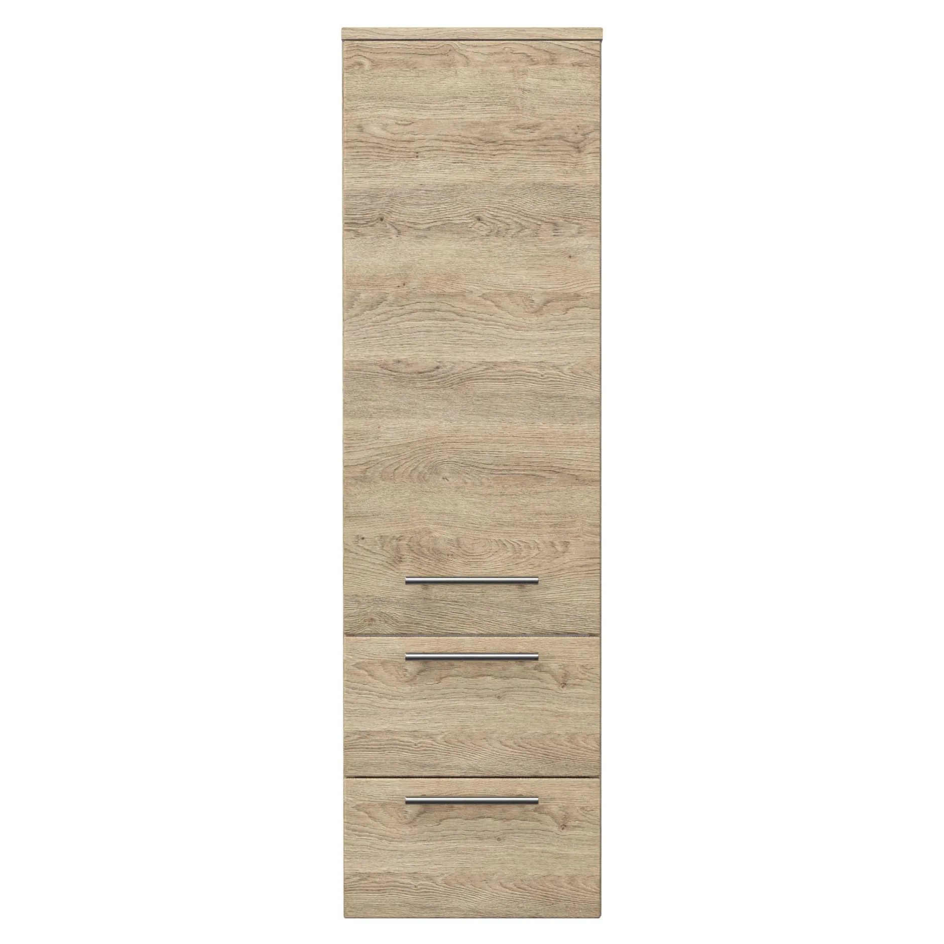 Deze chique badkamer kolomkast biedt voldoende ruimte om al je spullen op te bergen. De soft-close laden en deuren sluiten geruisloos en zijn voorzien van rvs-handvaten. Door zijn melamine afwerking is deze kast gemakkelijk schoon te houden en langer beschermd tegen stof, vuil en krassen. Deze kasten zijn geproduceerd in Duitsland en zijn van hoogwaardige kwaliteit. Uitermate geschikt voor gebruik in de badkamer. Achter de deur bevinden zich 2 verstelbare glazen legplanken. Deze kast is 35,2 cm breed, 120 cm hoog en 35,8 cm diep en is ook verkrijgbaar in het beton, wit en antraciet. De kast is gemaakt van spaanplaat.
