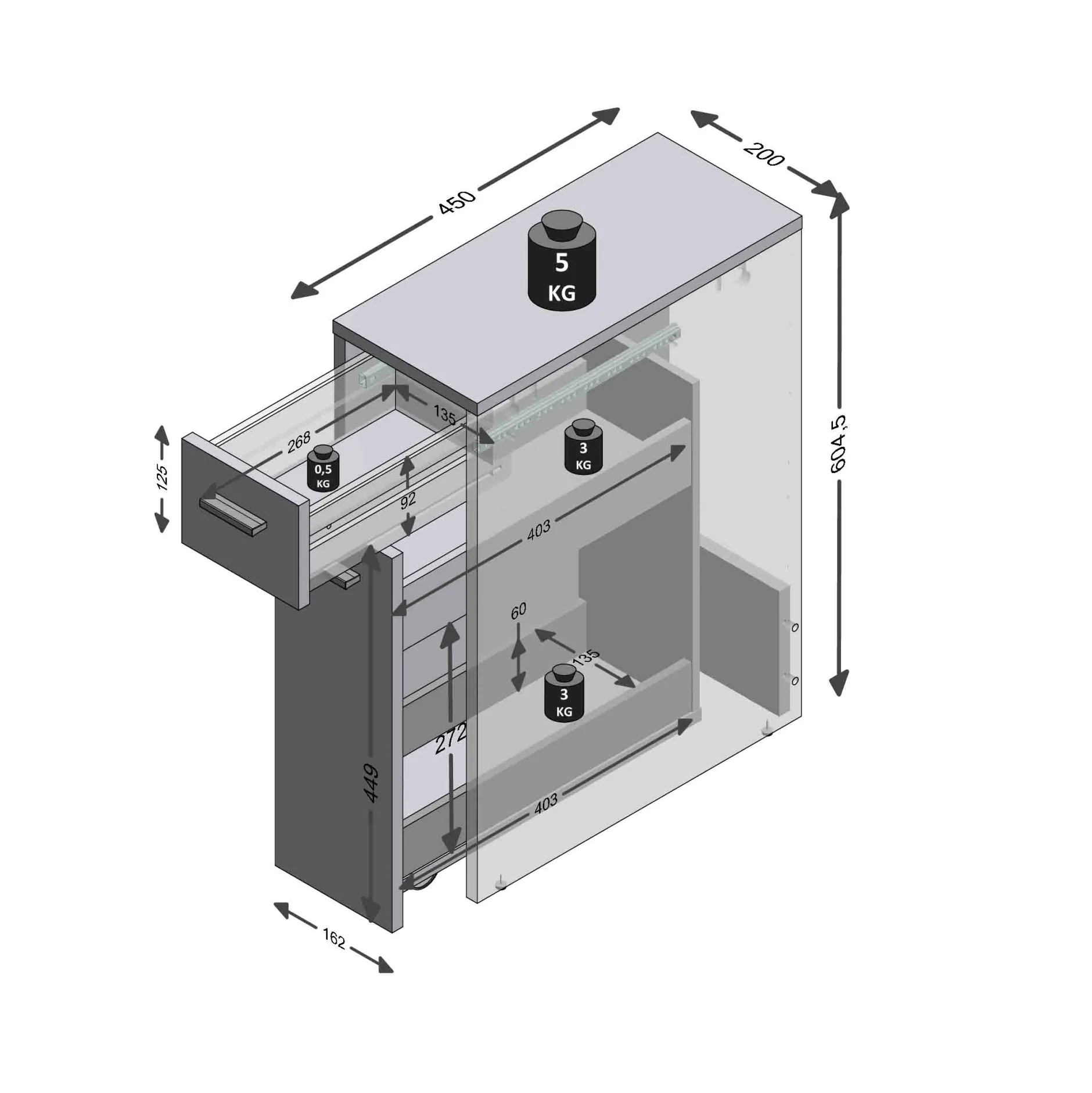 Dit handige badkamerkastje kun je kwijt in elke hoek. De onderste lade heeft voldoende ruimte om bijvoorbeeld flessen shampoo in kwijt te kunnen, daarboven nog een gedeelte voor de kleinere artikelen.