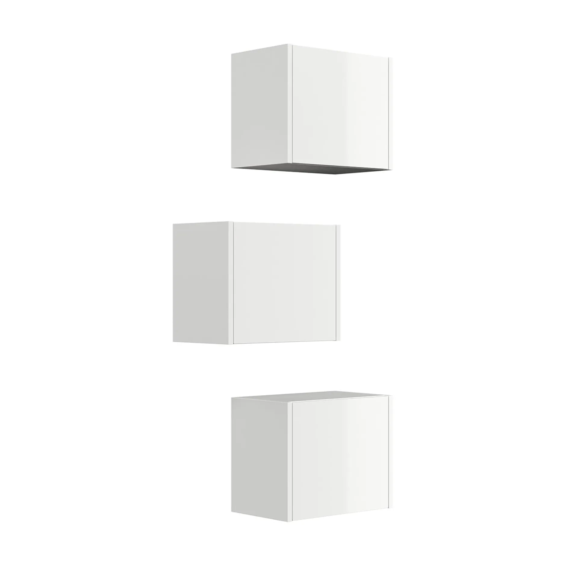Deze set van drie badkamerboxen in hoogglans wit is ideaal voor het creëren van extra opbergruimte in de badkamer. Dankzij het strakke design en de flexibele plaatsingsopties kunnen ze zowel afzonderlijk als samen worden gebruikt.