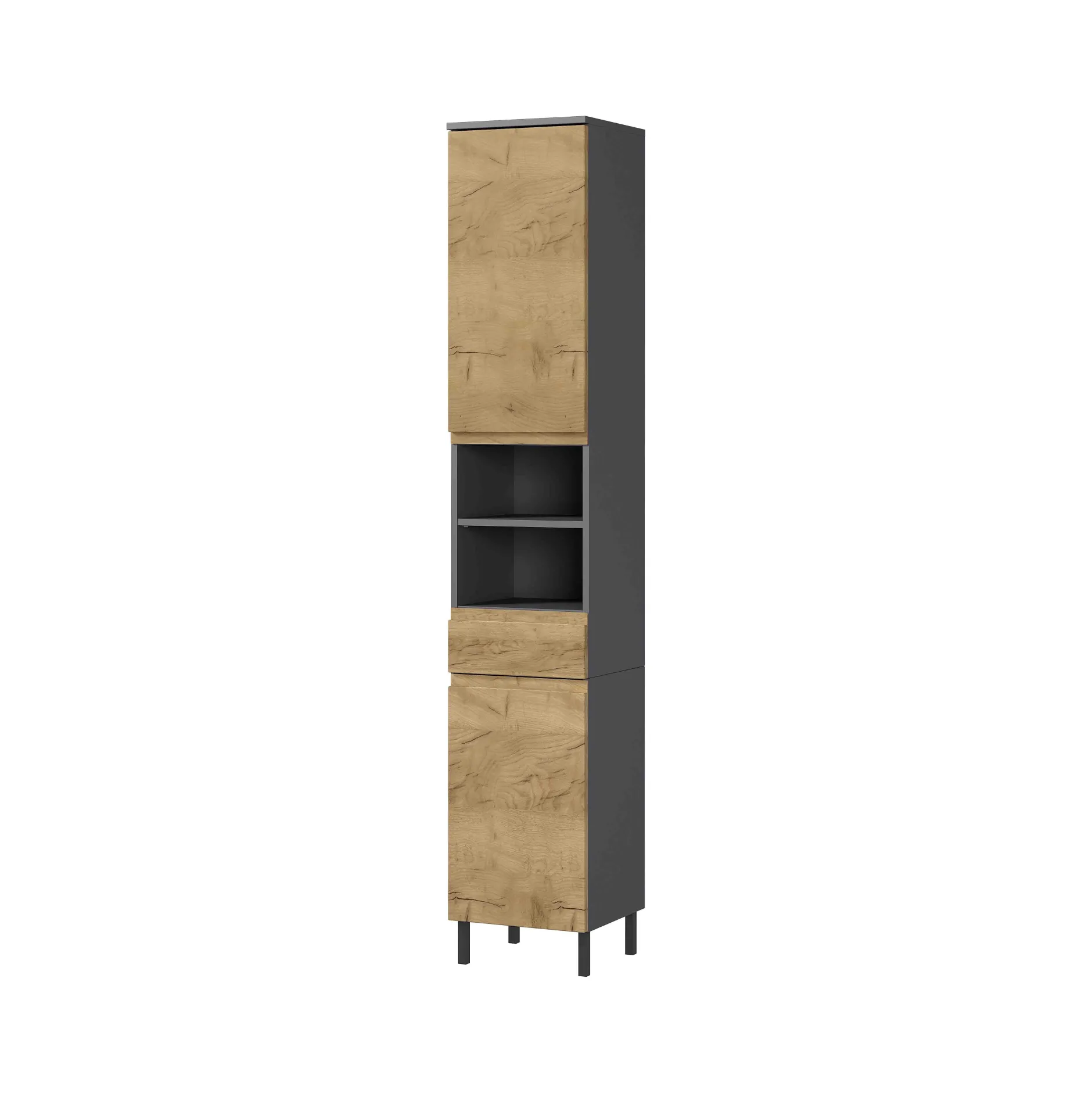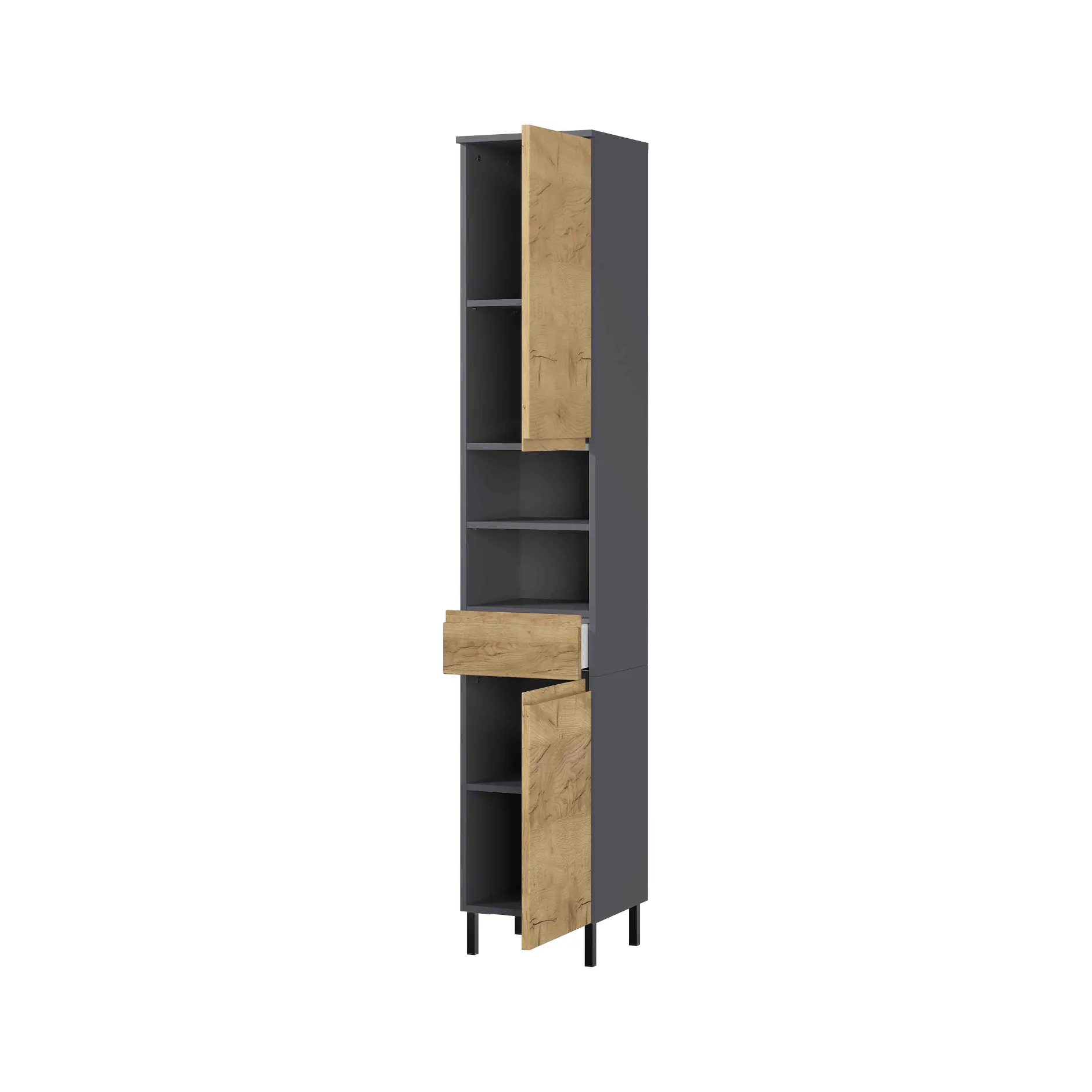 Deze badkamerkolomkast kun je gemakkelijk kwijt door zijn ideale afmetingen van 34 x34 centimeter. Door de hoogte van 190 centimeter ben je echter gegarandeerd voorzien van voldoende opbergruimte, deze is ook nog naar wens in te delen door de verstelbare legplanken. Gepoedercoat metalen pootjes in combinatie met geruisloos sluitende deuren en laden maken dit meubelstuk helemaal af. Geproduceerd in Duitsland, dit staat voor degelijke kwaliteit en een lange levensduur. Gemakkelijk te monteren doormiddel van de meegeleverde montagehandleiding. Bekijk ook de andere elementen uit deze badkamerserie!