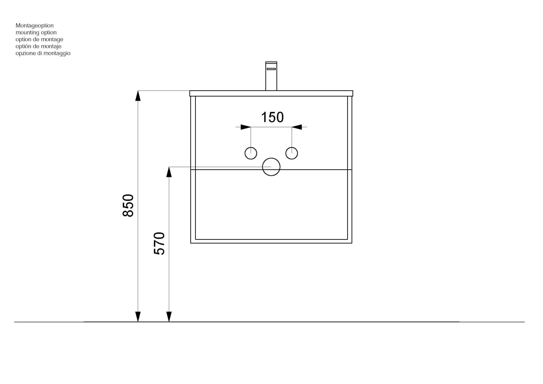 De wastafelkast wordt geleverd exclusief kraan, toevoerleidingen naar de kraan, afvoerplug en zwanenhals.