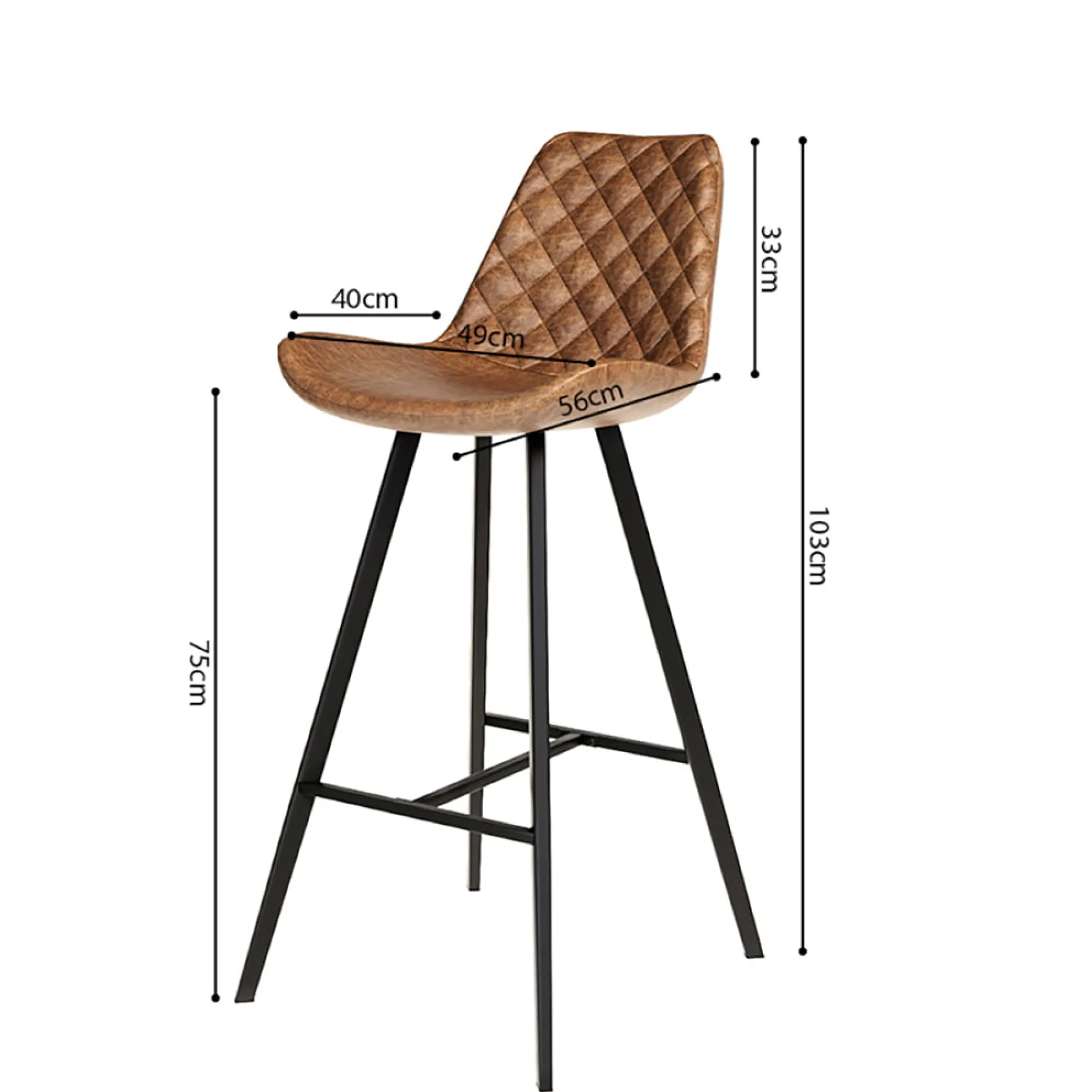 Deze praktische en betaalbare barkruk heeft een stevig zwart metalen onderstel. De kunstlederen vintage bekleding maakt deze barkruk een echte eyecatcher! Deze barkruk heeft een zithoogte van 75 centimeter en een zitdiepte van 40 centimeter en is verkrijgbaar in verschillende kleuren.