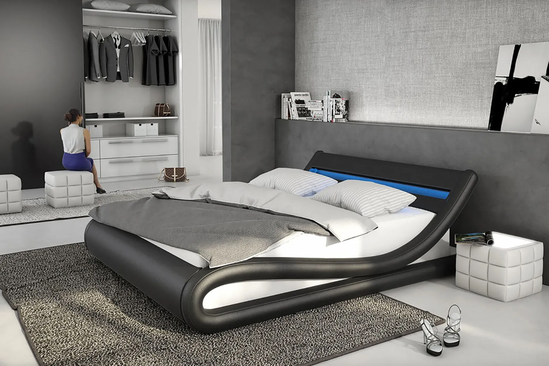 Dit bed is vervaardigd uit een stevige MDF en afgewerkt met een degelijk kunstleer. Het bed wordt geleverd exclusief matras en inclusief lattenbodem. De instaphoogte van het bed is ongeveer 38 centimeter, de hoogte van het hoofdeinde 79 centimeter, de hoogte van het voeteneinde is 41 centimeter. Het hoofdeinde is voorzien van geïntegreerde ledverlichting. Verkrijgbaar in verschillende kleuren en afmetingen.