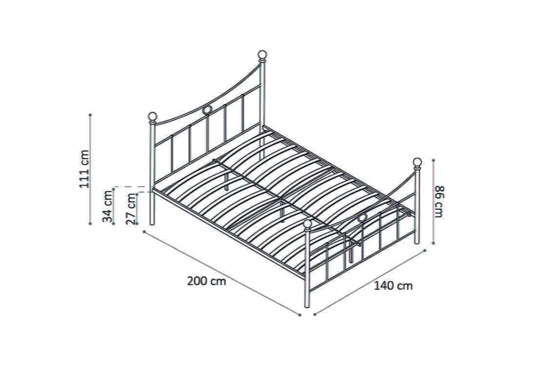 Stevig metalen tweepersoonsbed, onder het bed is een ruimte van 27 cm hoog voor het opbergen van al je spullen. Het bed wordt geleverd inclusief lattenbodem. Verkrijgbaar in meerdere kleuren en afmetingen. Eenvoudig te monteren met behulp van de bijgeleverde montagetekening.